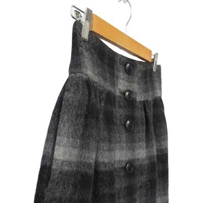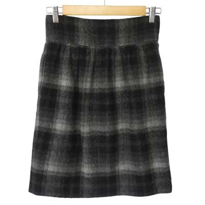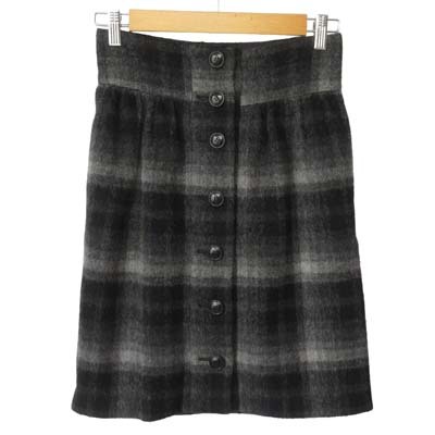 バーニーズニューヨーク BARNEYS NEW YORK スカート タイト ミニ チェック ウール 36 黒 ブラック レディース