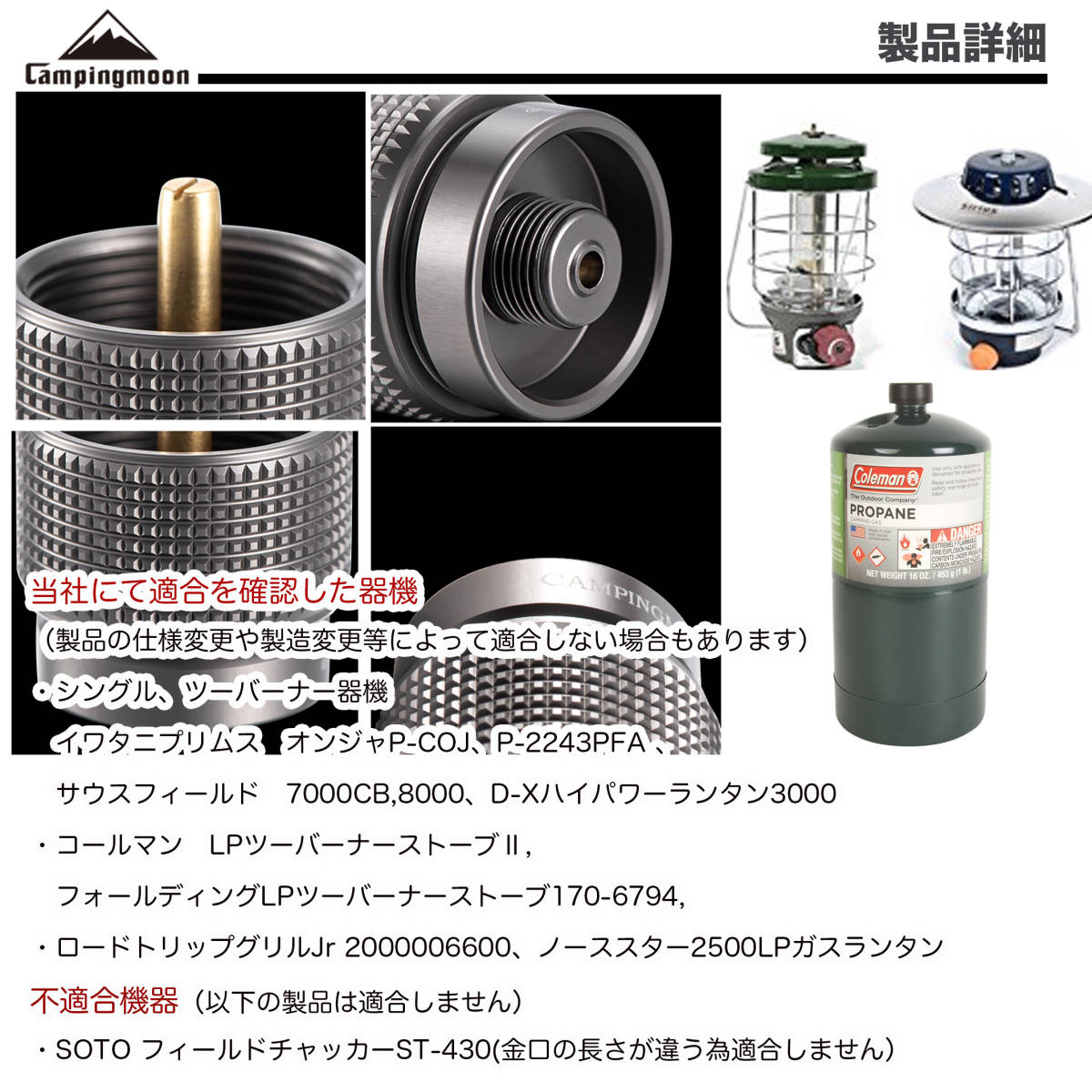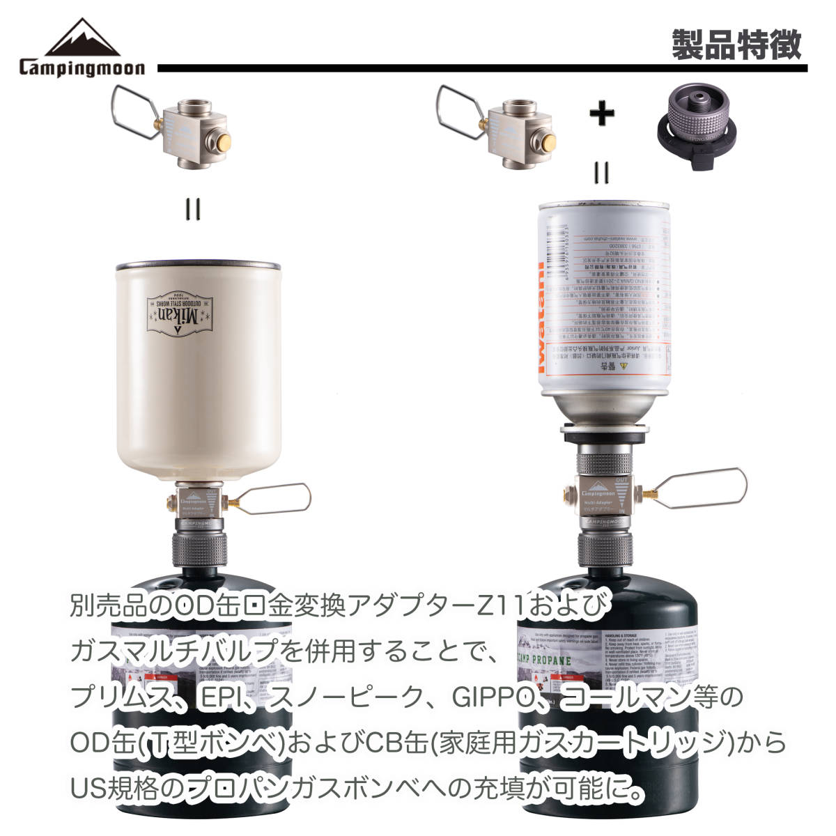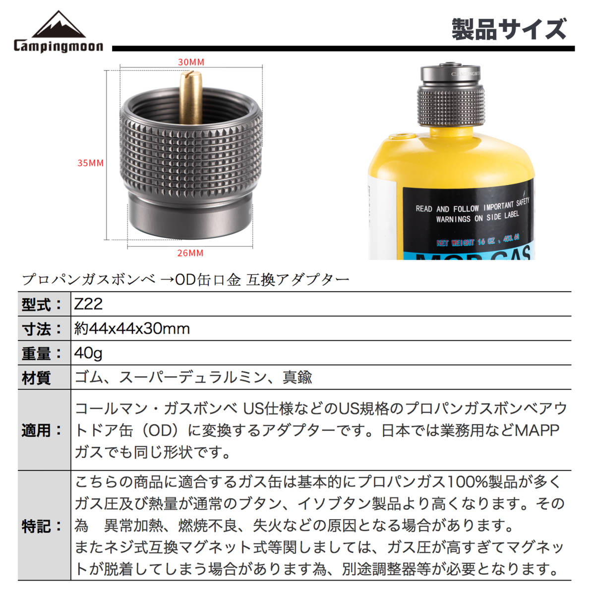 USプロパンボンベ⇒OD缶 変換アダプタ 型式 Z22 サイズ 約44×43×30(mm) 材質 ゴム、スーパージュラルミン、真鍮 コールマン、ガスボンベUS仕様などのUS規格のプロパンガスボンベをアウトドア缶に変換するアダプタとなります。 変換することにより国内で一般的なOD缶用のバーナー等が利用可能になります。 | |||