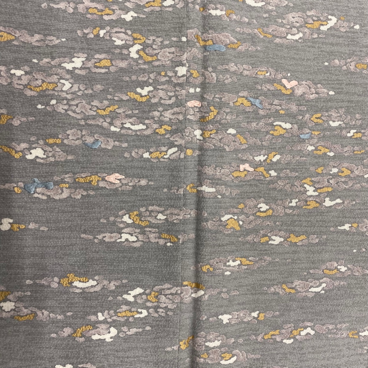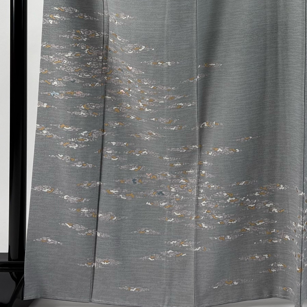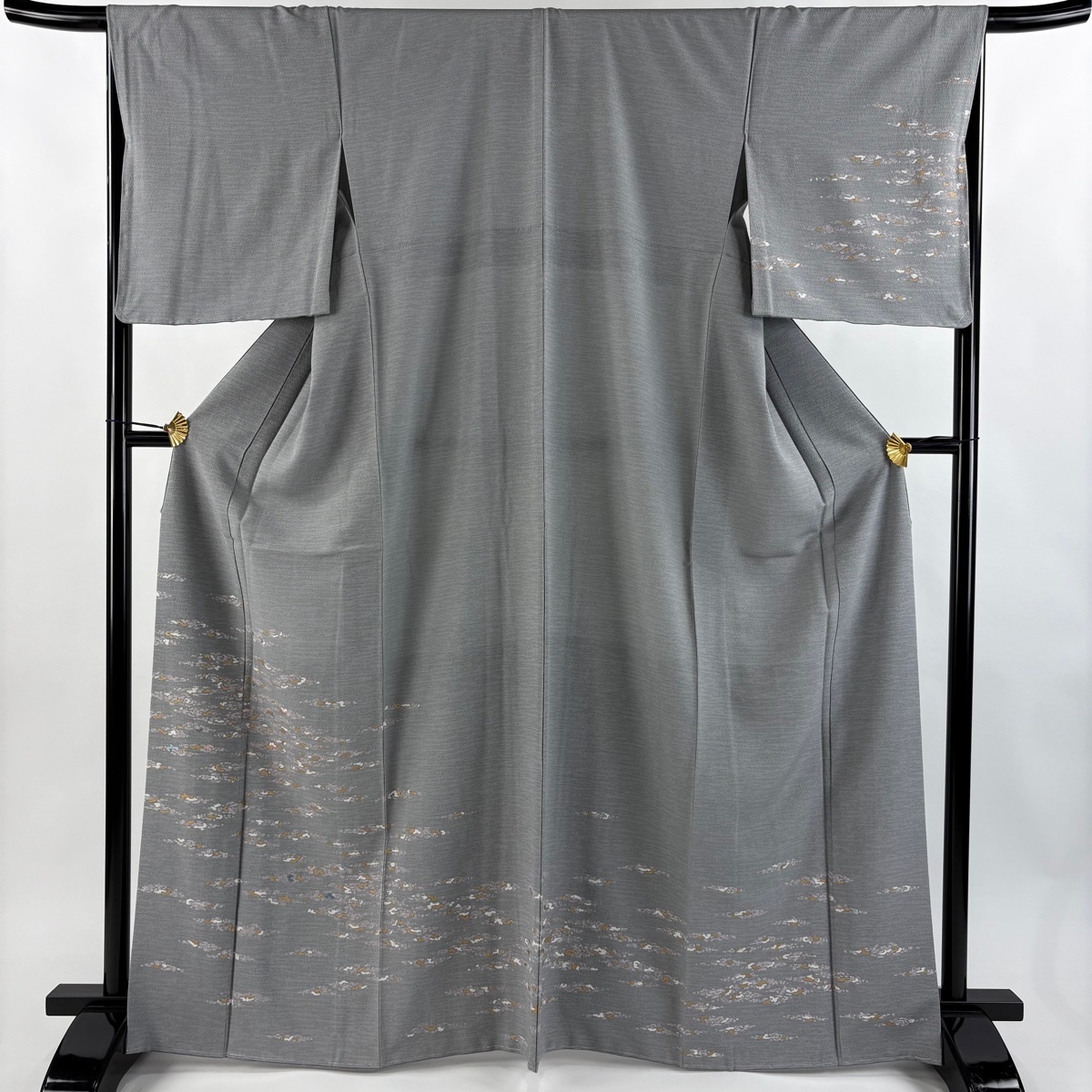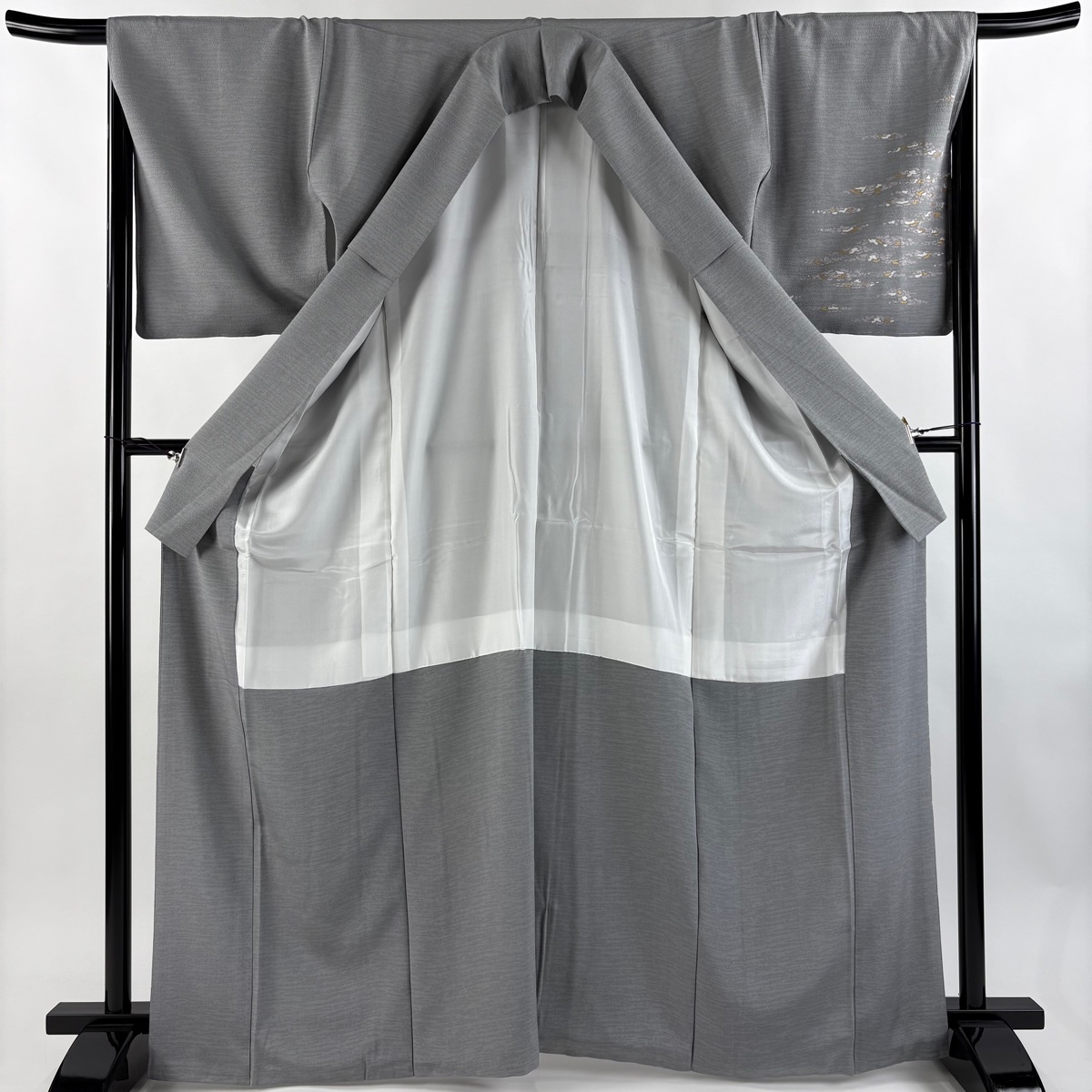 付下げ 美品 秀品 幾何学模様 刺繍 金彩 灰色 袷 身丈167 裄丈67.5 L 正絹 【中古】 |