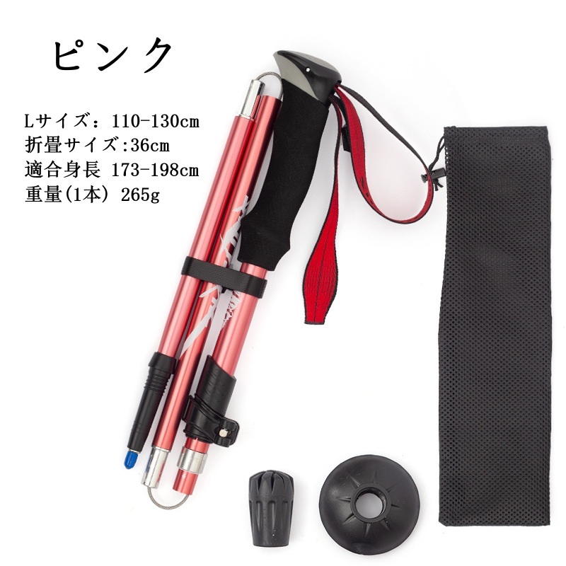 トレッキングポール 折りたたみ 登山杖 コンパクト トレッキング ウォーキング 110-130cm 適合身長 173-198cm 2本セット ピンク L