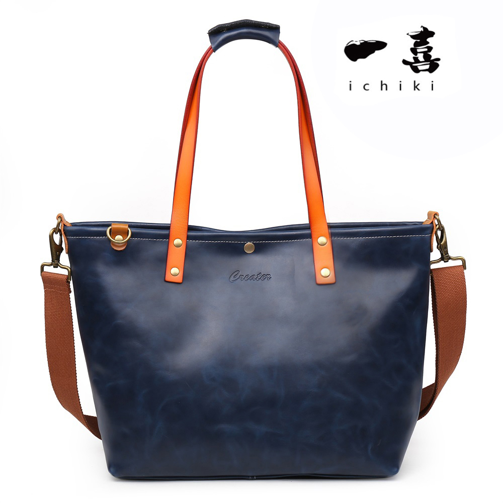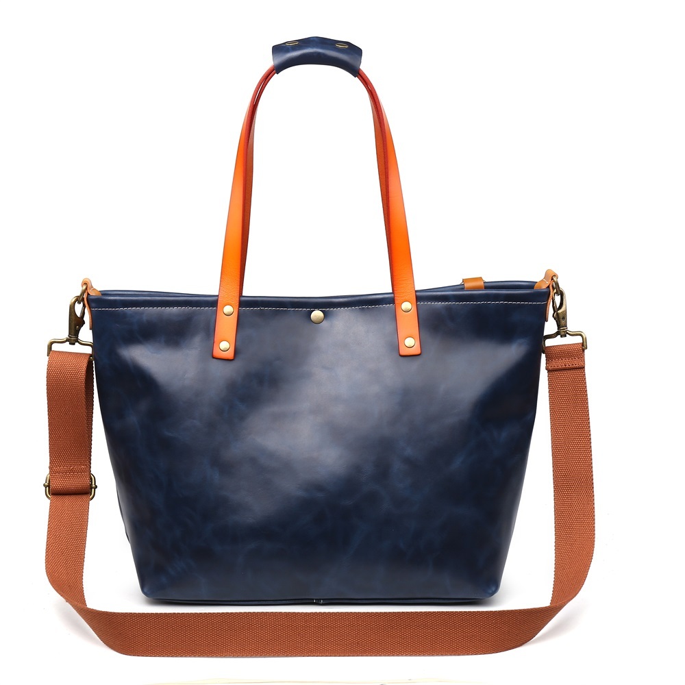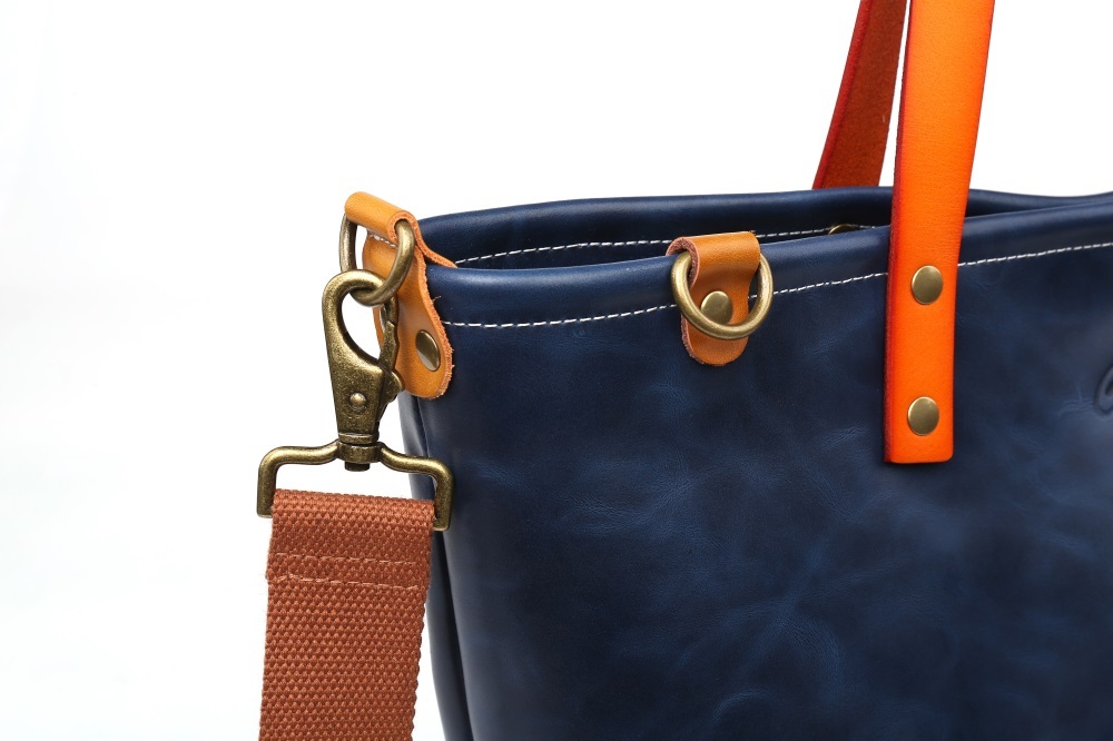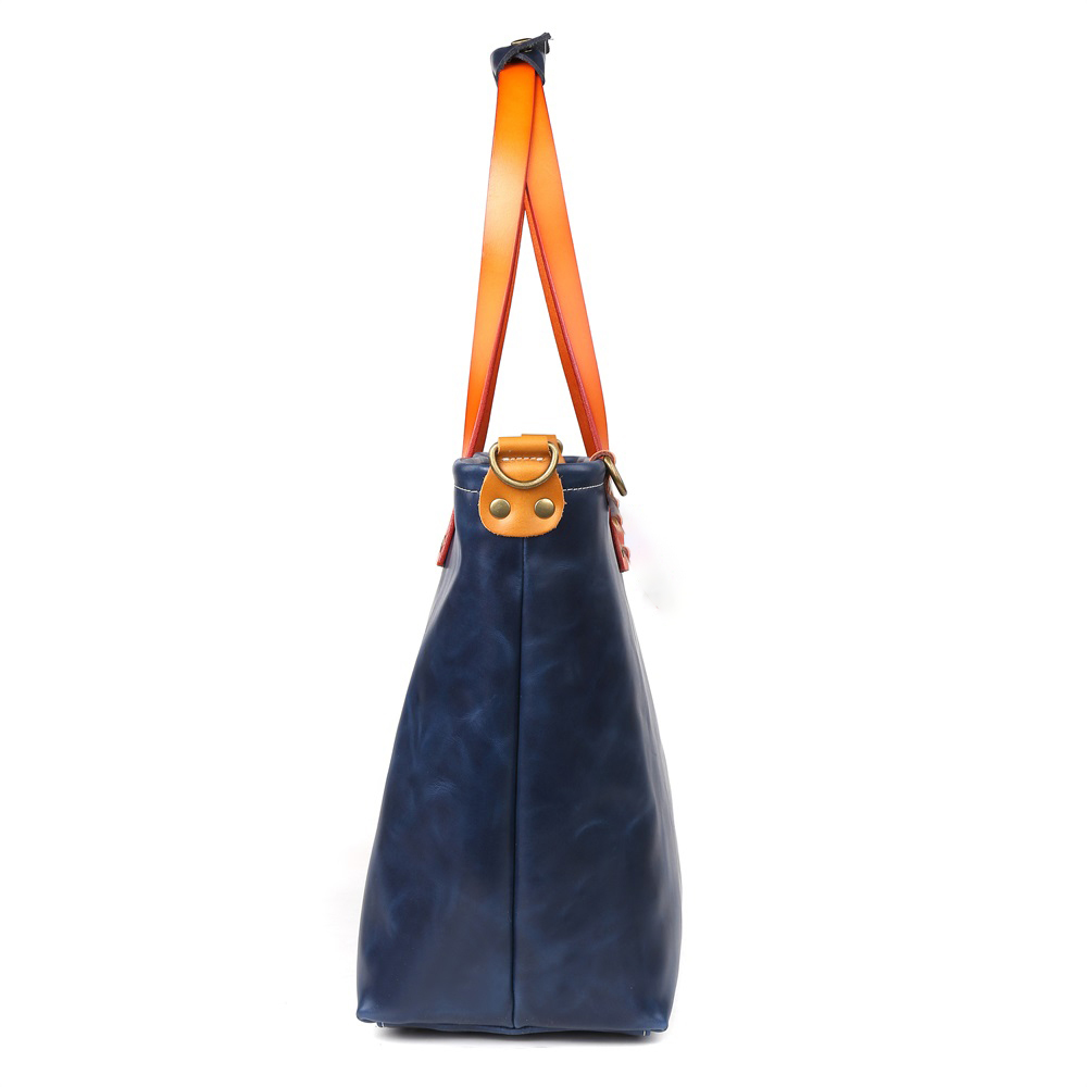 タイムセール★上質ネイビー ヌメ革レザー 大容量 2WAY トート&ショルダーバッグ ハンドメイド ブルー D08