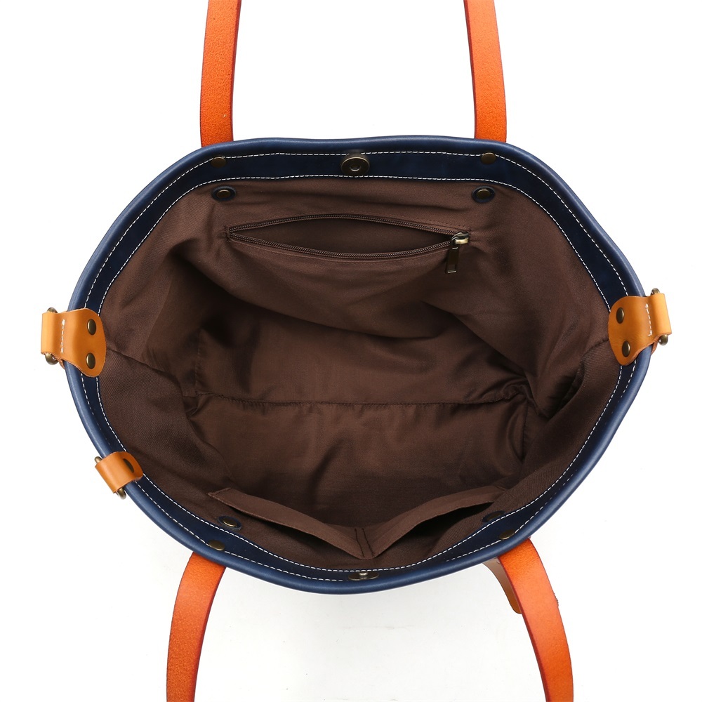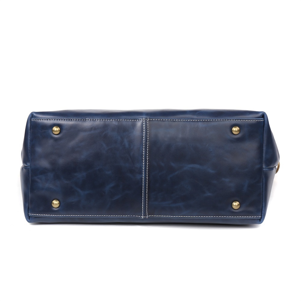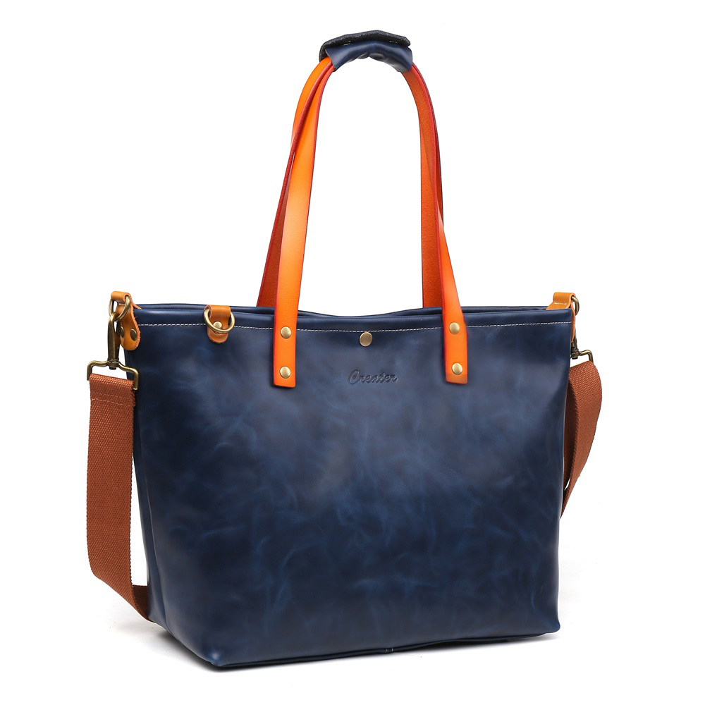 タイムセール★上質ネイビー ヌメ革レザー 大容量 2WAY トート&ショルダーバッグ ハンドメイド ブルー D08