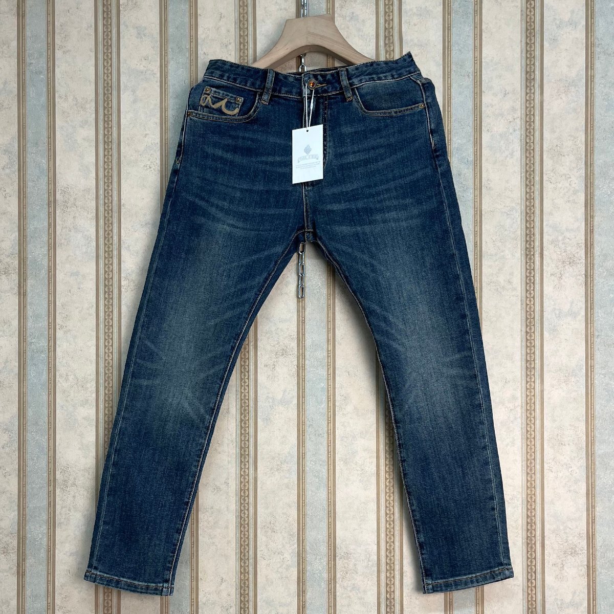 定番 定価4万 FRANKLIN MUSK・アメリカ・ニューヨーク発 デニムパンツ 上質 通気 ソフト ヴィンテージ加工 刺繍 気品 スリム ジーンズ 通勤 サイズ32