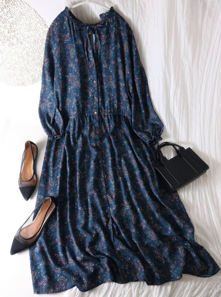 1.3万☆ユナイテッドアローズ/green label relaxing☆洗える Deveaux(デヴォー) ペイズリー マキシワンピース☆M-B 5239