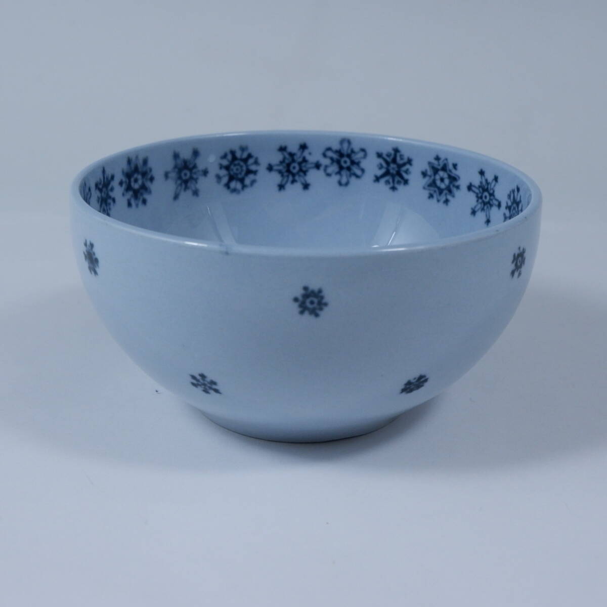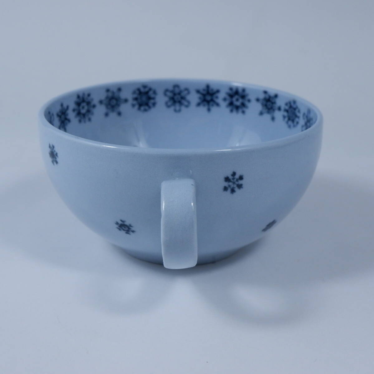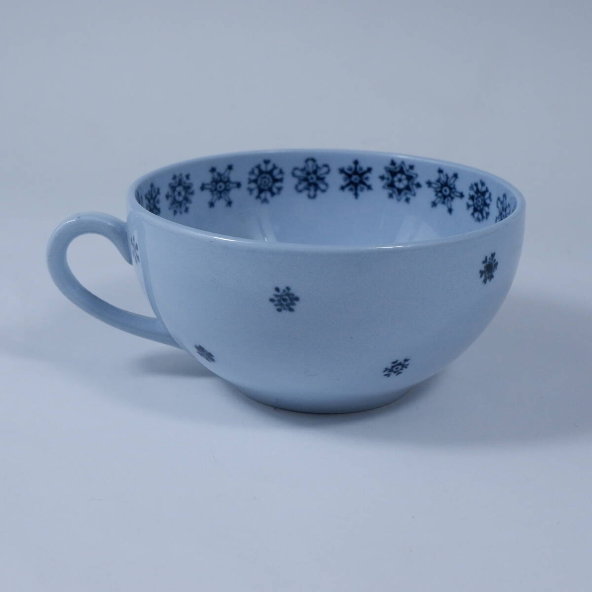 ヴィンテージならではのハンドプリントの数種類の雪の結晶が描かれた愛らしいカップです。