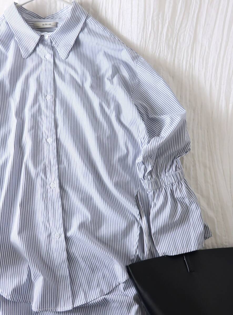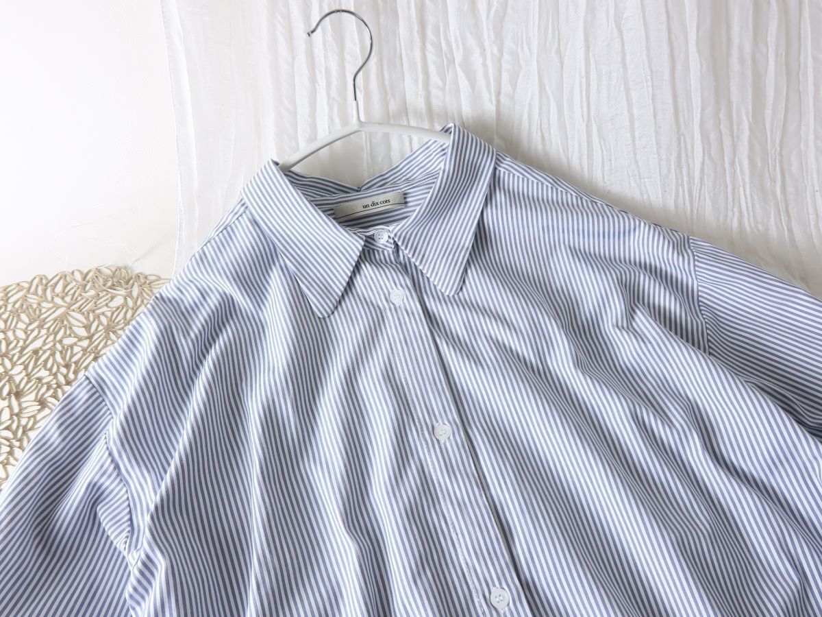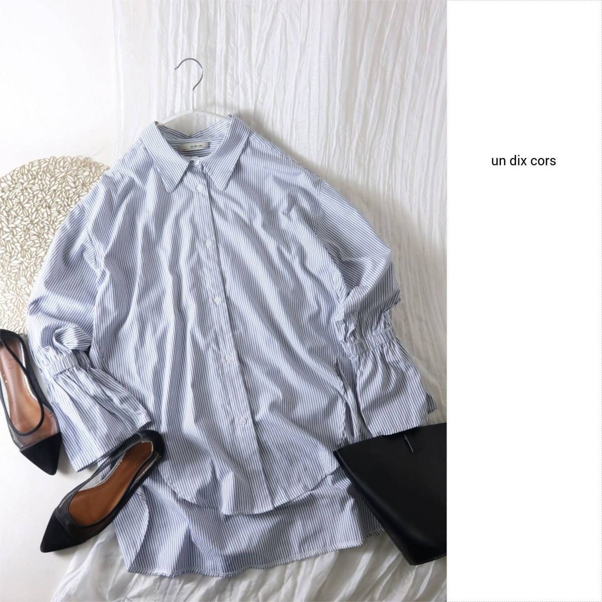 超美品☆アンディコール un dix cors☆洗える ストライプ柄 袖フレアシャツ Mサイズ☆A-O 5386