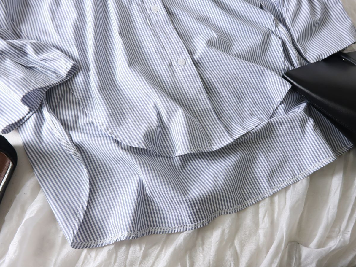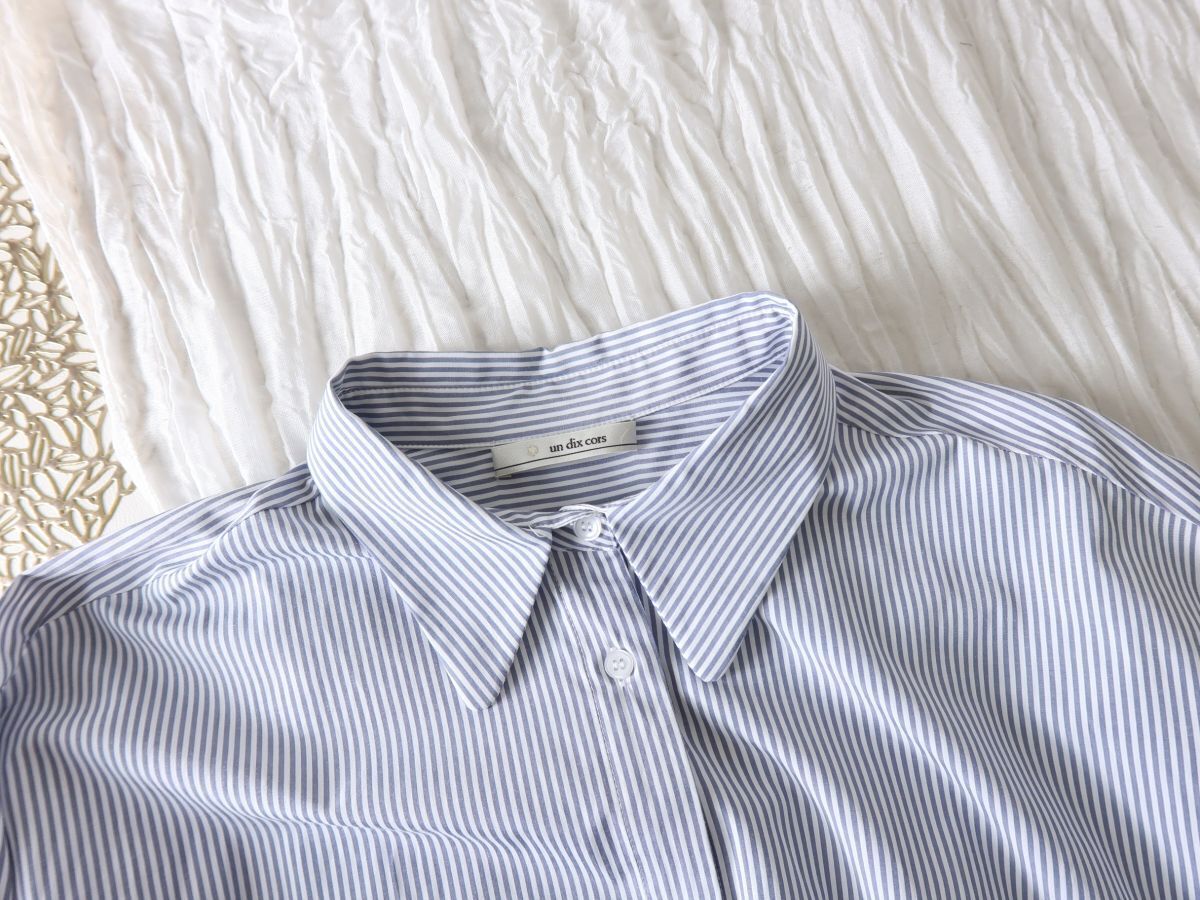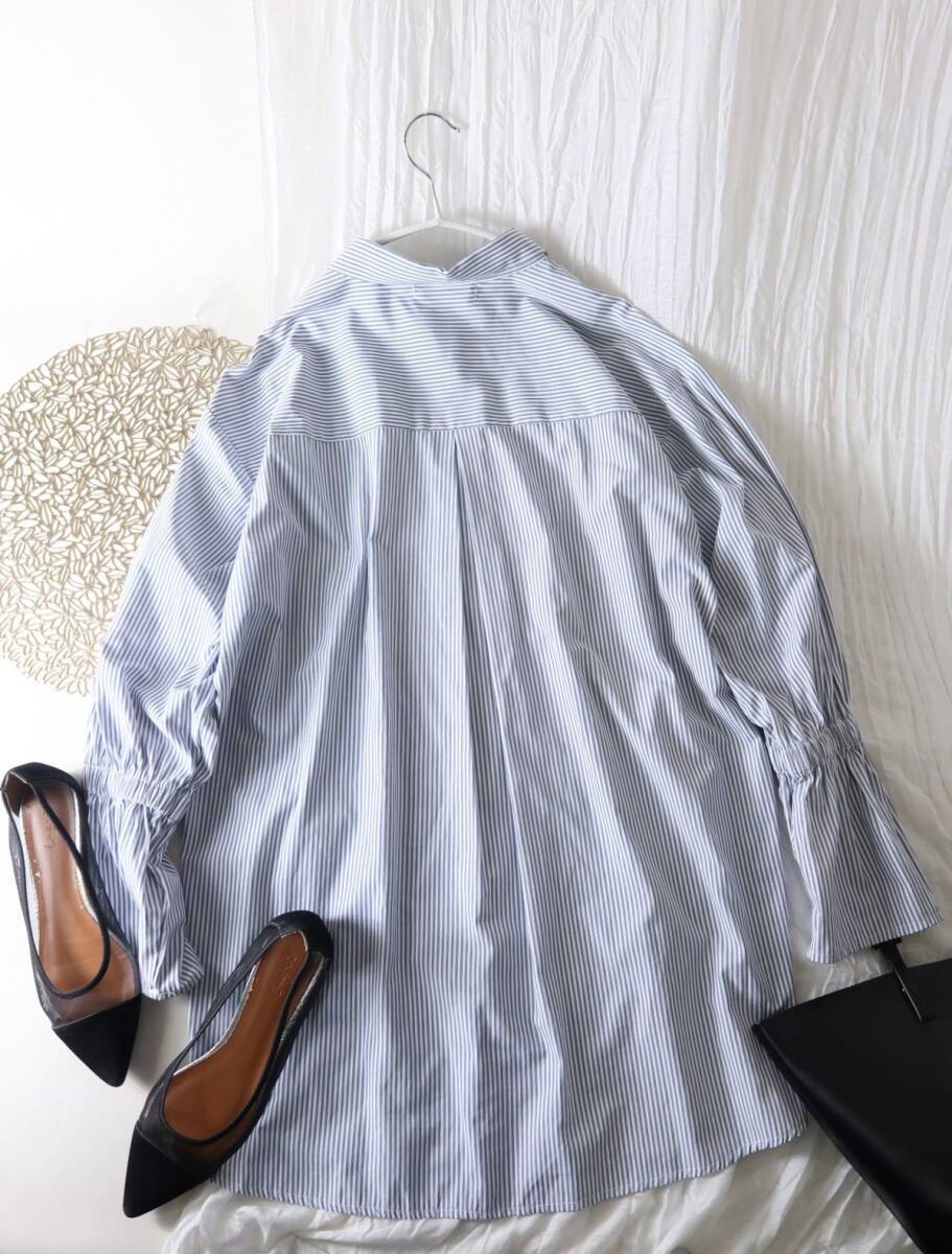 超美品☆アンディコール un dix cors☆洗える ストライプ柄 袖フレアシャツ Mサイズ☆A-O 5386