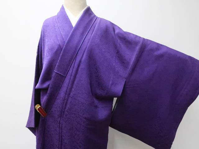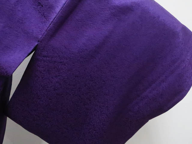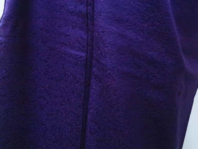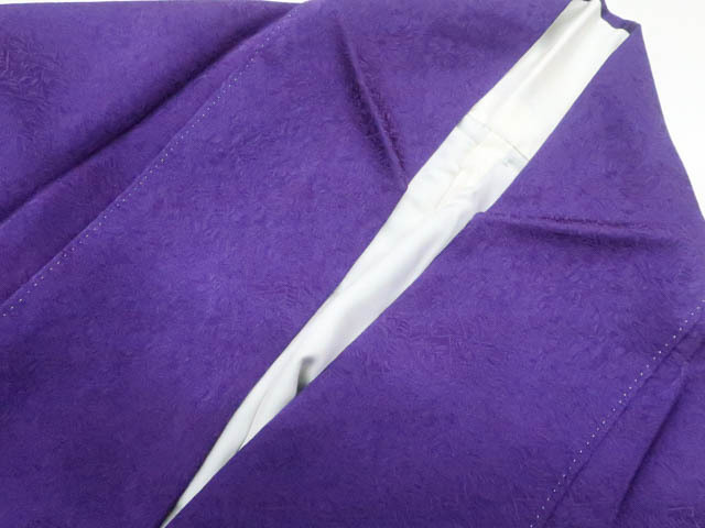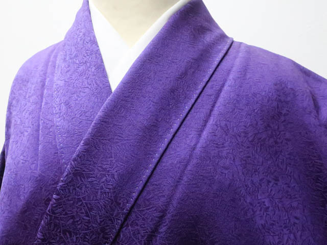 リサイクル商品のため、衿汚れがございますがご着用いただけると存じます。 地色は 紫です。 1枚目の画像が近いお色かと思われます。 素材は正絹です。 |