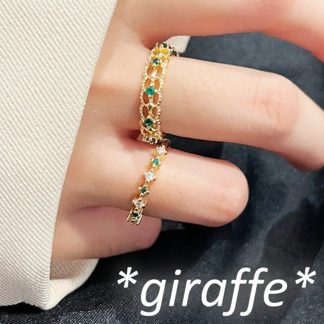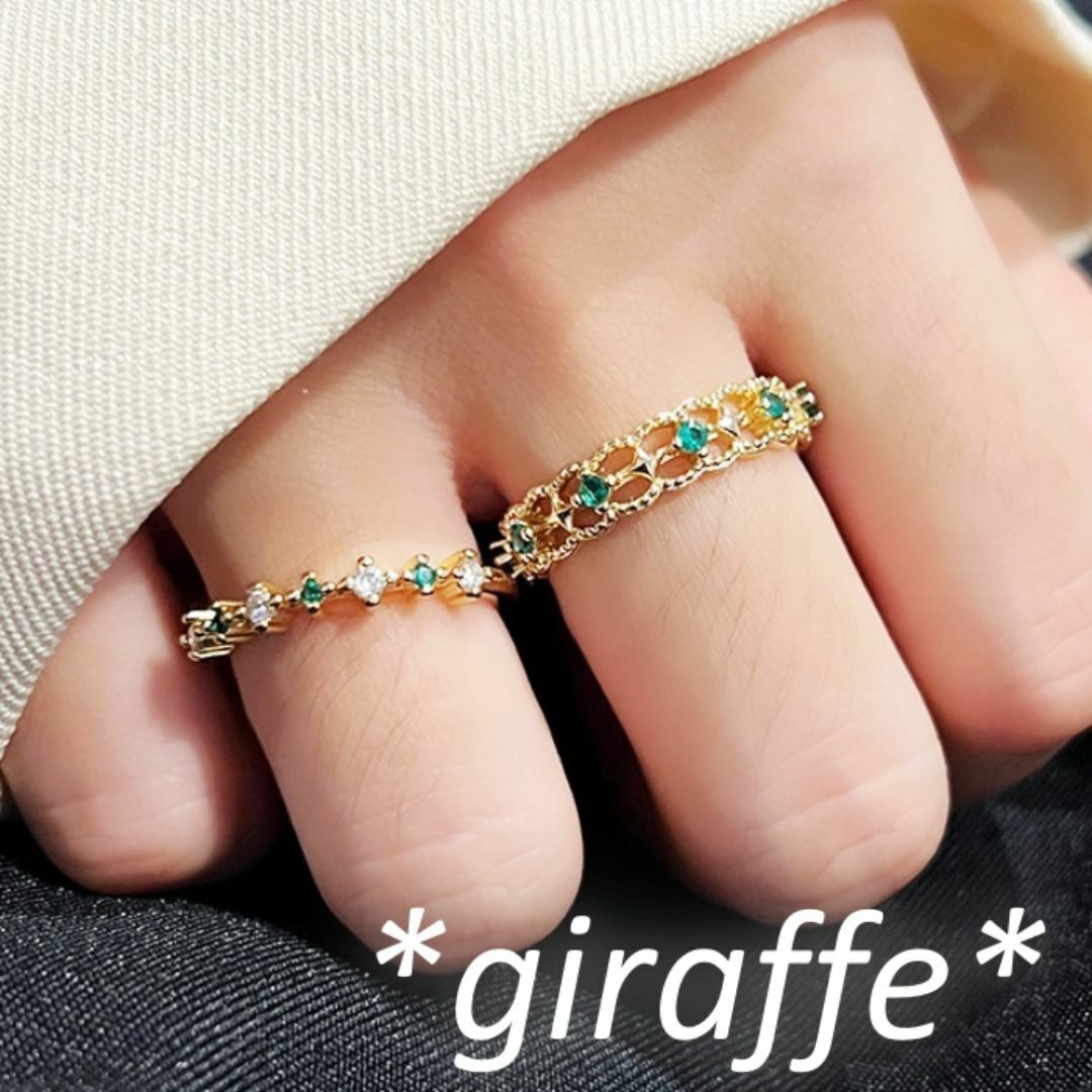 A667 匿名配送 指輪 レディース グリーン ジルコニア リング ゴールド フリーサイズ 細め サイズ調節可能 上品 綺麗 可愛い