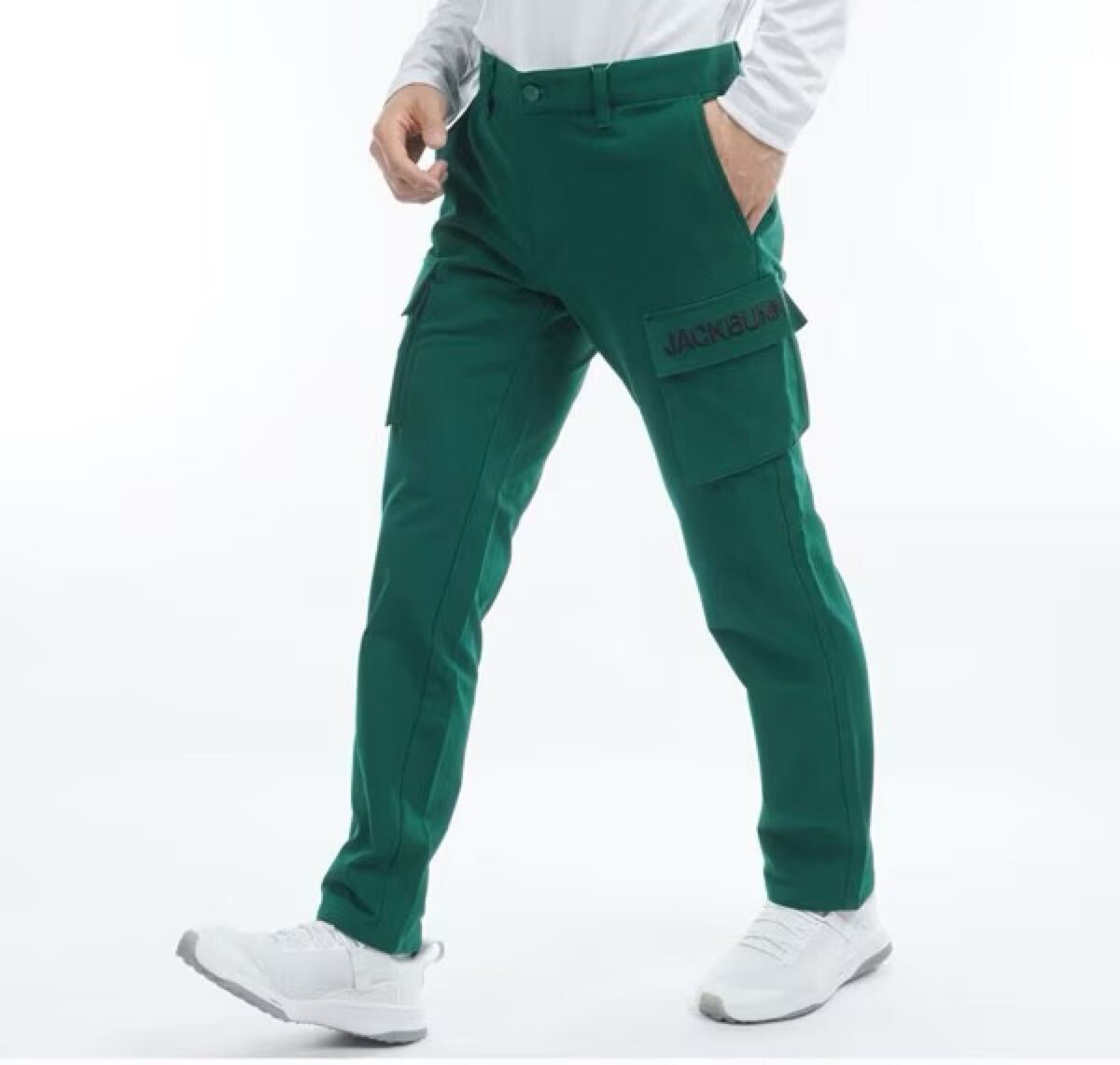 新鮮なカラーリングとロゴ刺繍を入れたアウトポケットがデザインポイントになった、ジャージツイルカーゴパンツ。