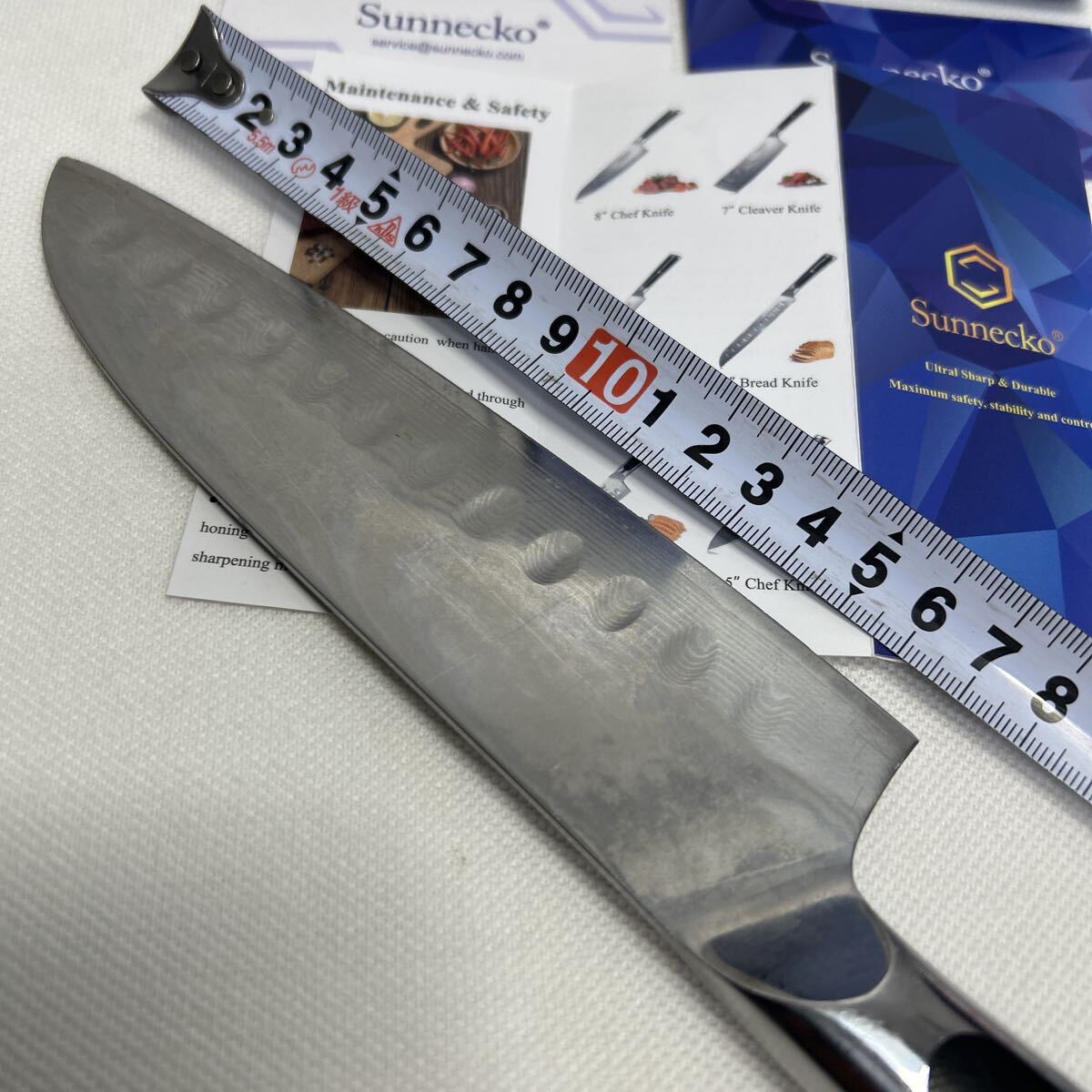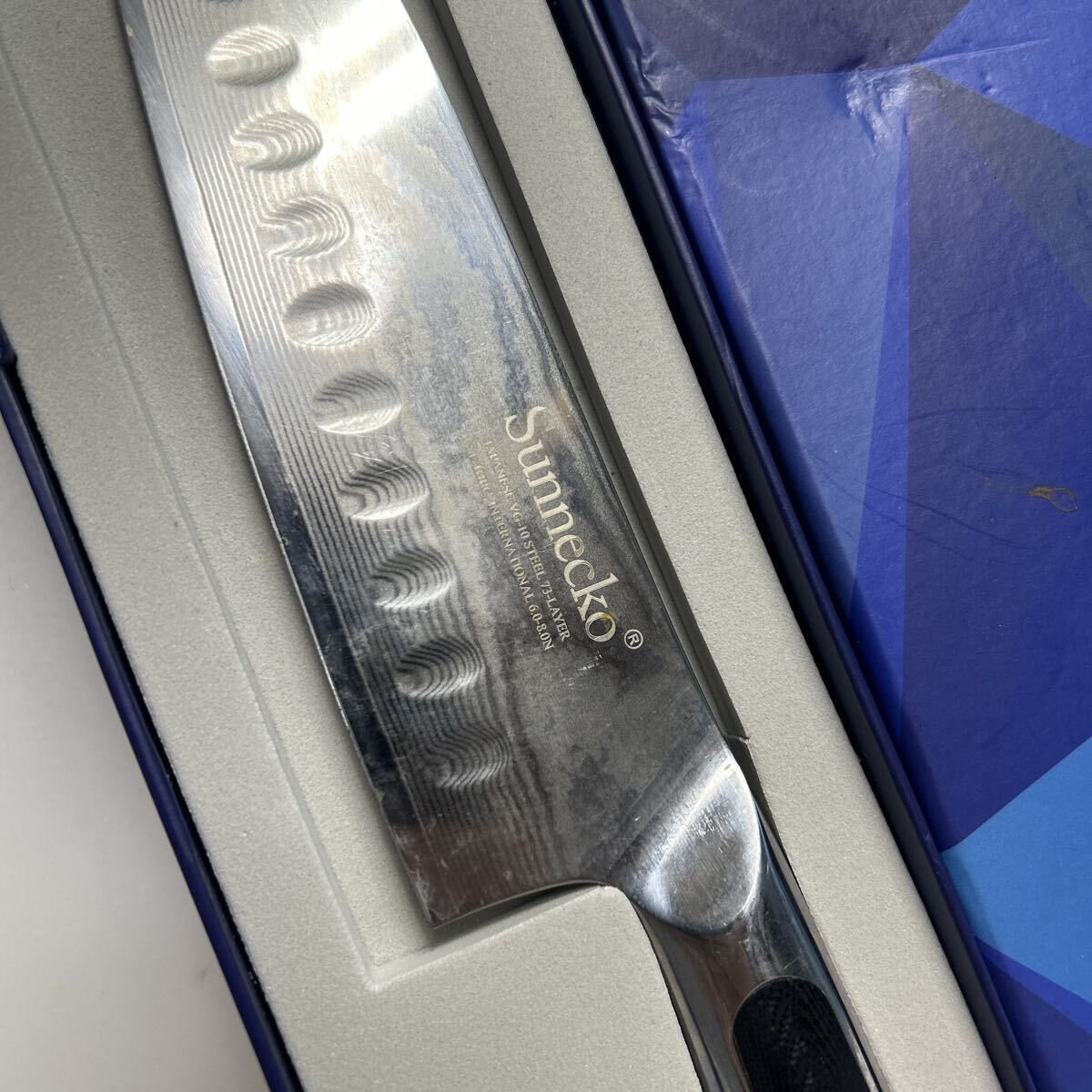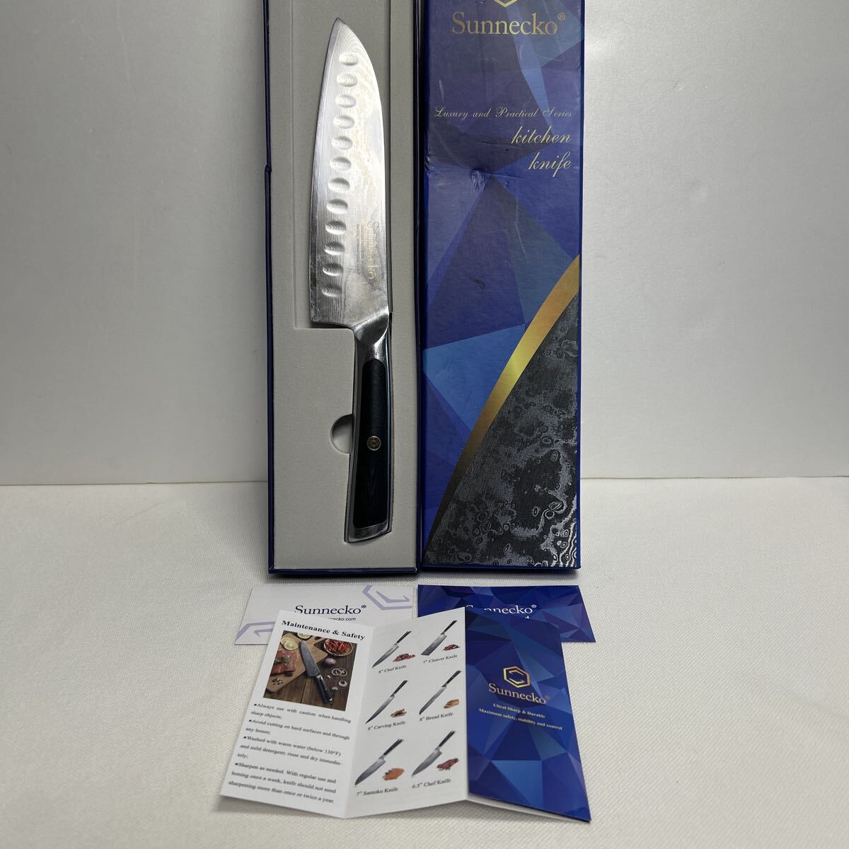 Sunnecko包丁 三徳包丁 刃渡り18.0cm 全長30.0cm 保管品 箱、説明書付き