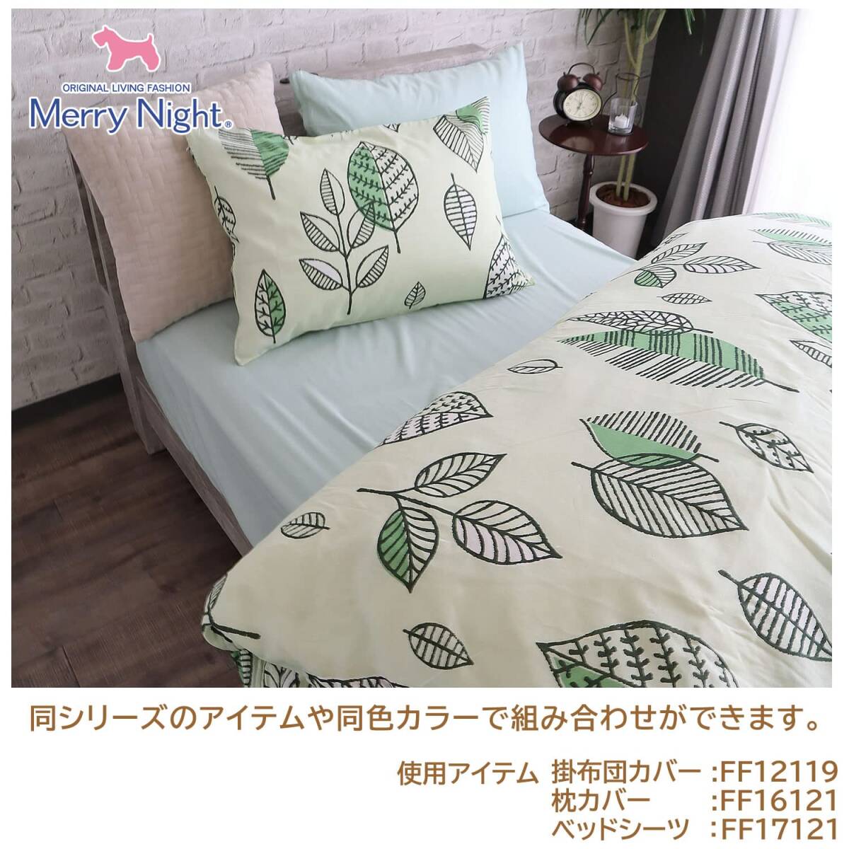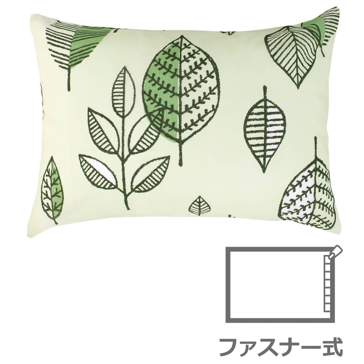 メリーナイト(Merry Night) 枕カバー 「ナチュラルリーフ」 グリーン 約43×63cm ファスナー式 まくらが入れやすい 綿100%