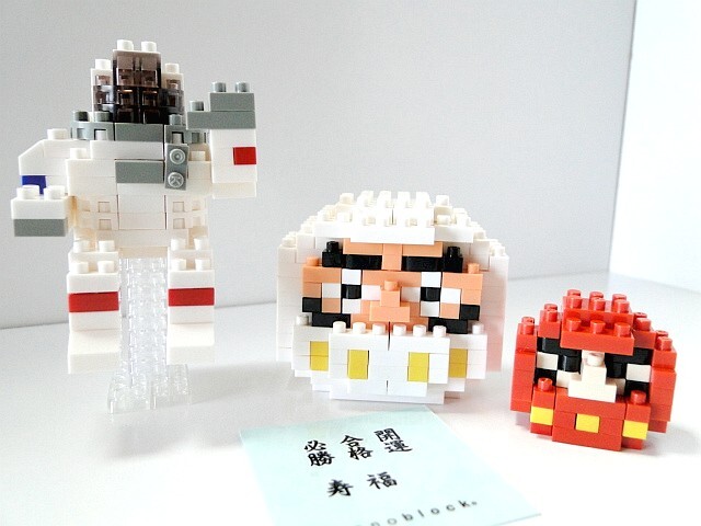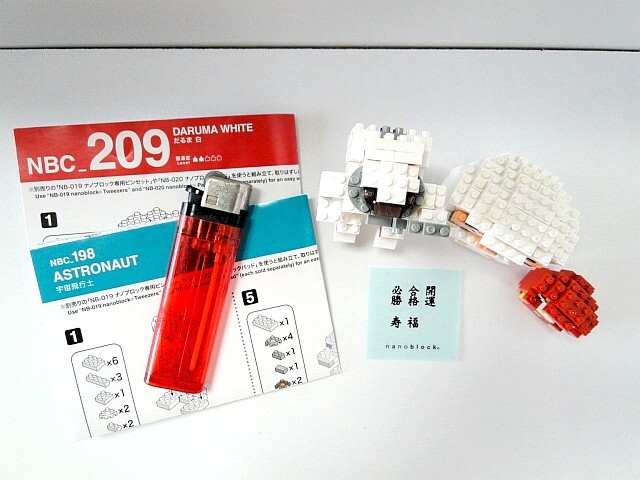 ナノブロックの「宇宙飛行士(NBC198)とだるま白(NBC209)とミニナノのだるま赤」の3個セットです。