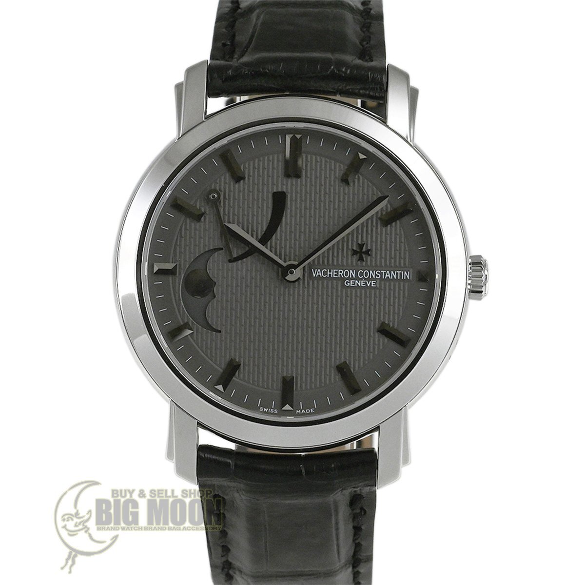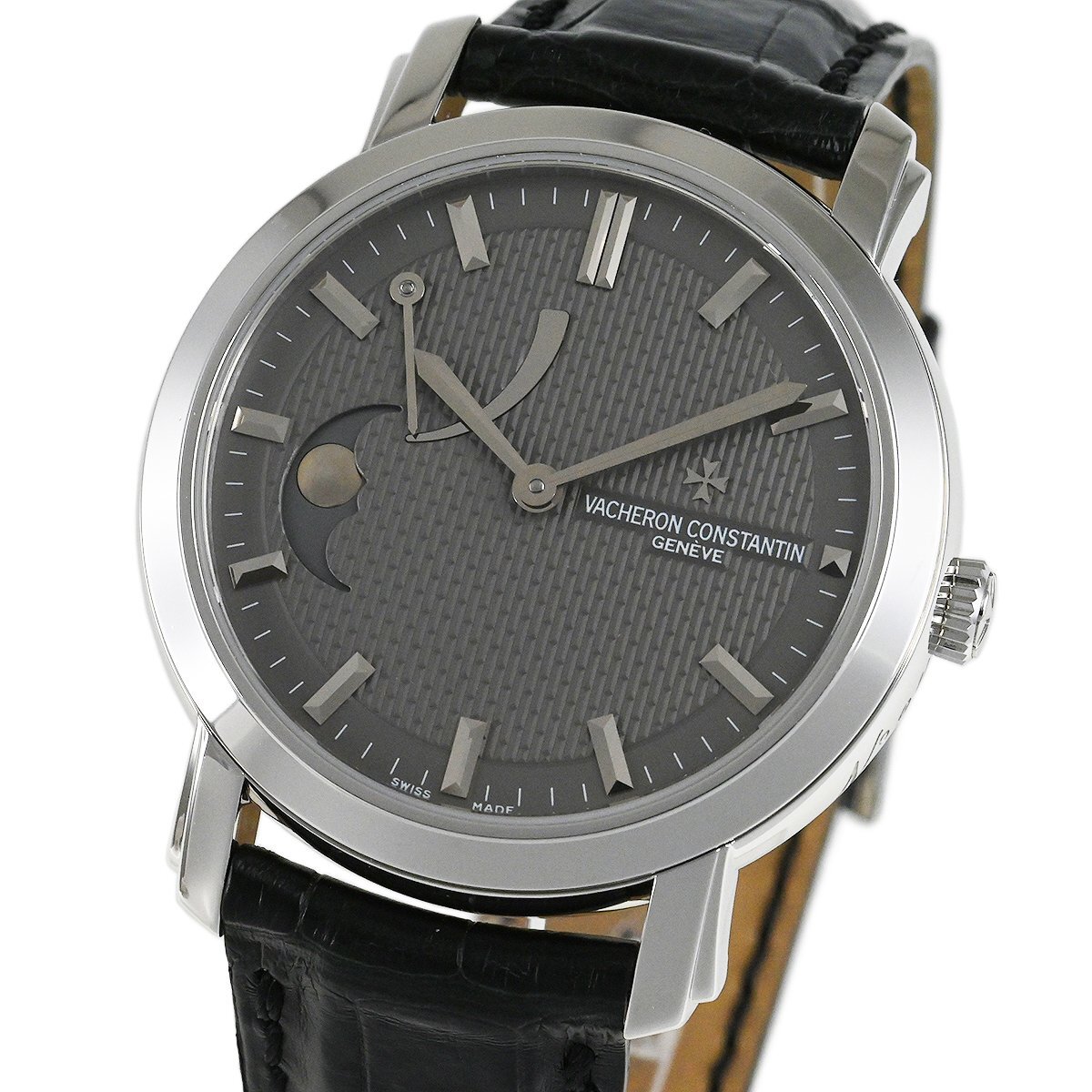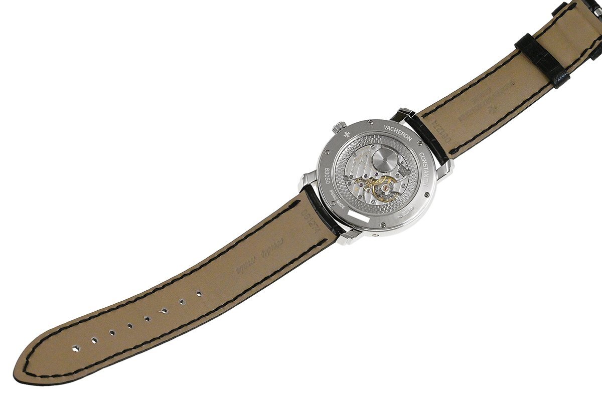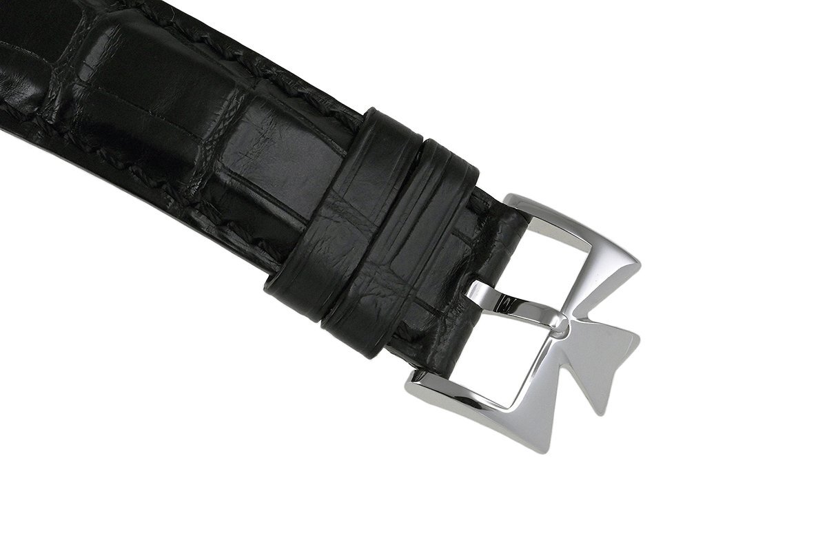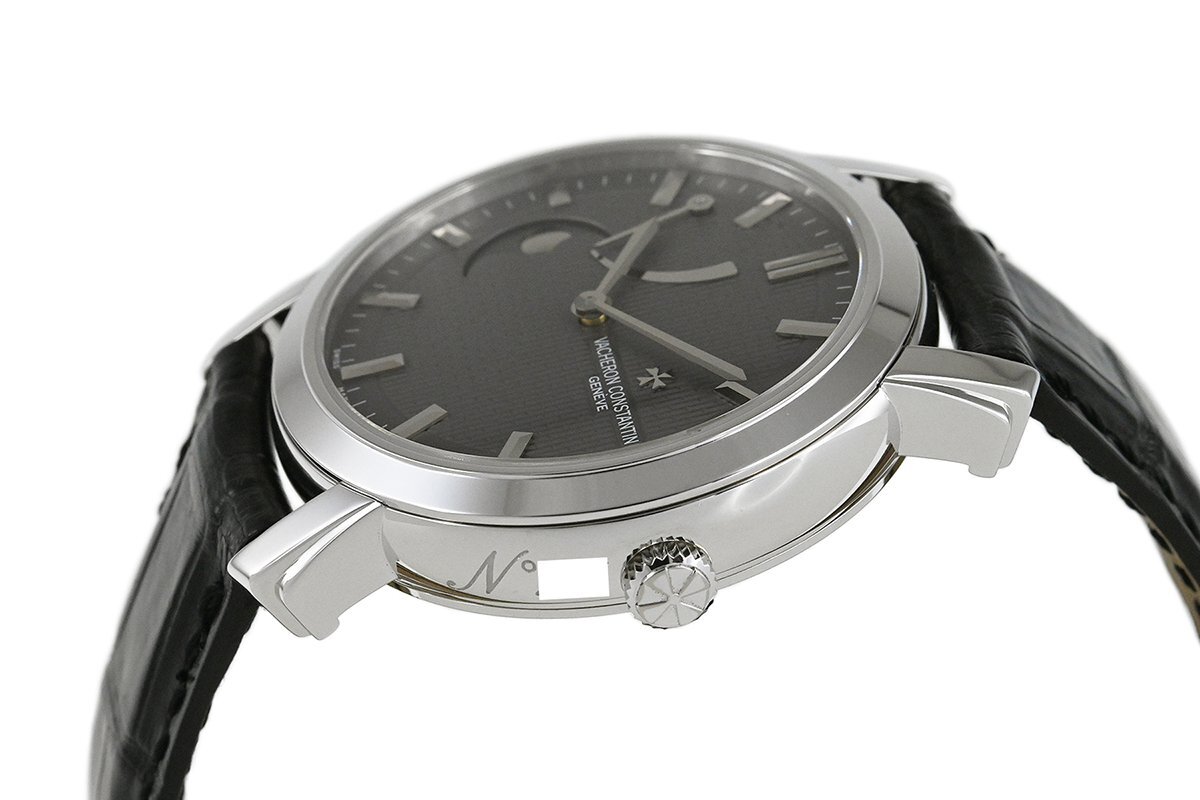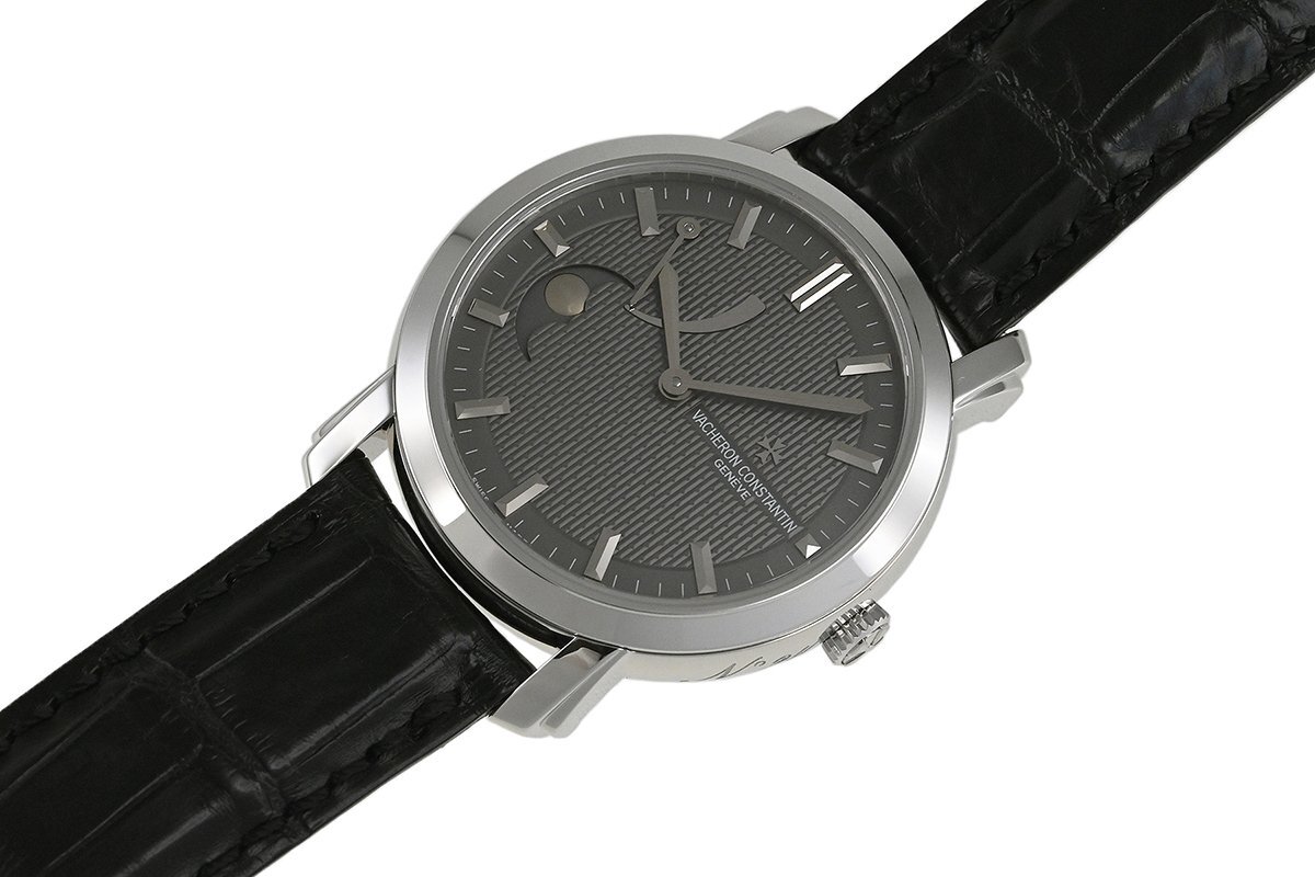【コメント】 2005年にヴァシュロン・コンスタンタンの創業250周年を記念して日本限定25本で発売された「マルティーズ (マルタの形容詞)」、K18ホワイトゴールドモデルです。9時位置にムーンフェイズ、10時位置にパワーリザーブを搭載しています。使用に伴う多少の小キズ・擦りキズはありますが目立つ様な深いキズはありません。革ベルトは巻き癖や尾錠の留め痕はありますが目立つ汚れ等なく良い状態です。購入時期は分かりませんが、2025年7月に当店契約の修理サービスにてオーバーホールをしています。現在精度は平置きで日差+2秒程です。