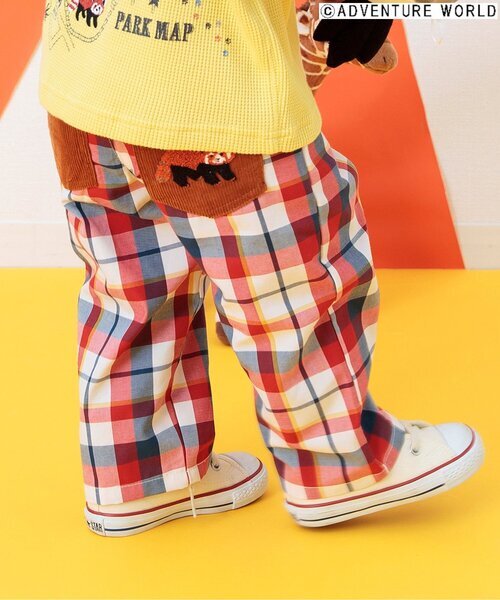 キーワード:パンツ キッズ 子供服 クロップド ストレート チェック ローライズ ワイドパンツ