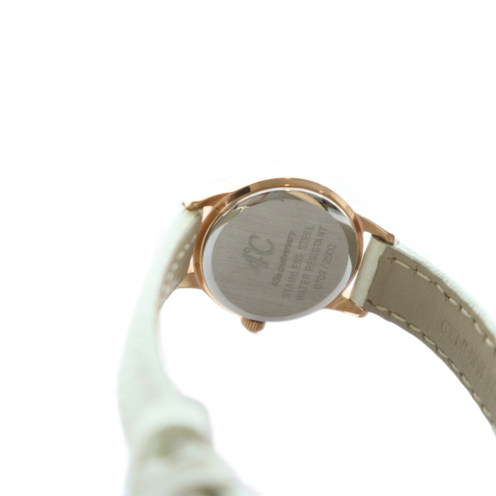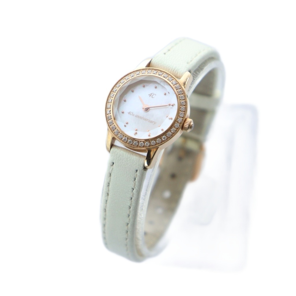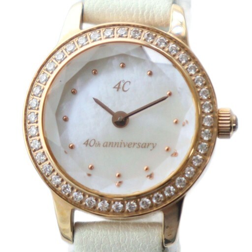 ヨンドシー 4℃ 40周年記念モデル 2500個限定 腕時計 クォーツ シェル文字盤 ラウンド カットガラス ラインストーン 金色 レザーベルト