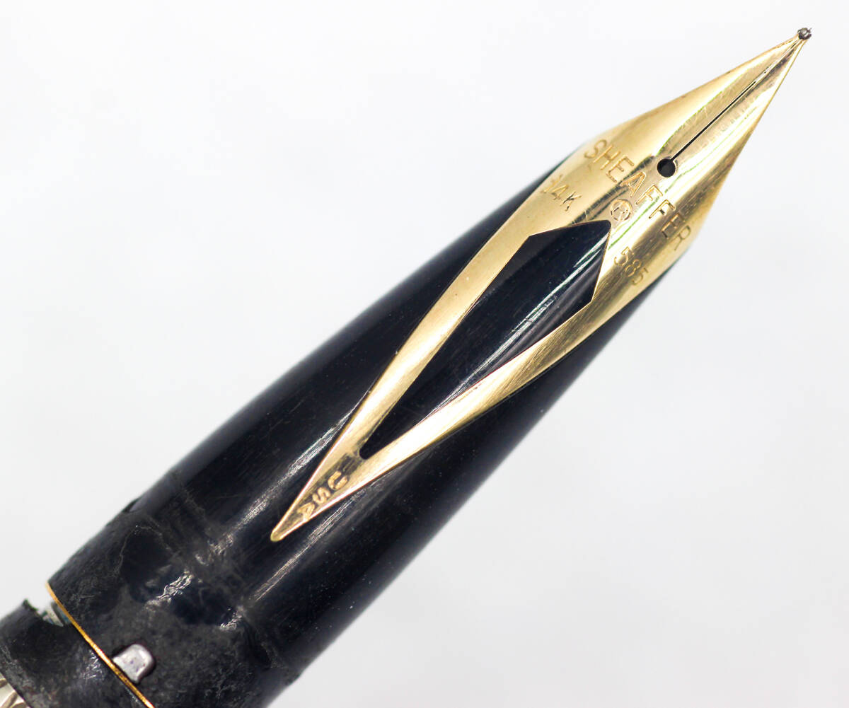 ○ 今もシェーファーを代表する首軸と一体となったインレイニブは、美しいだけでなく、やや反りあがったペン先が書き手の持ち方を選ばず、書き易い実用性を備えています。