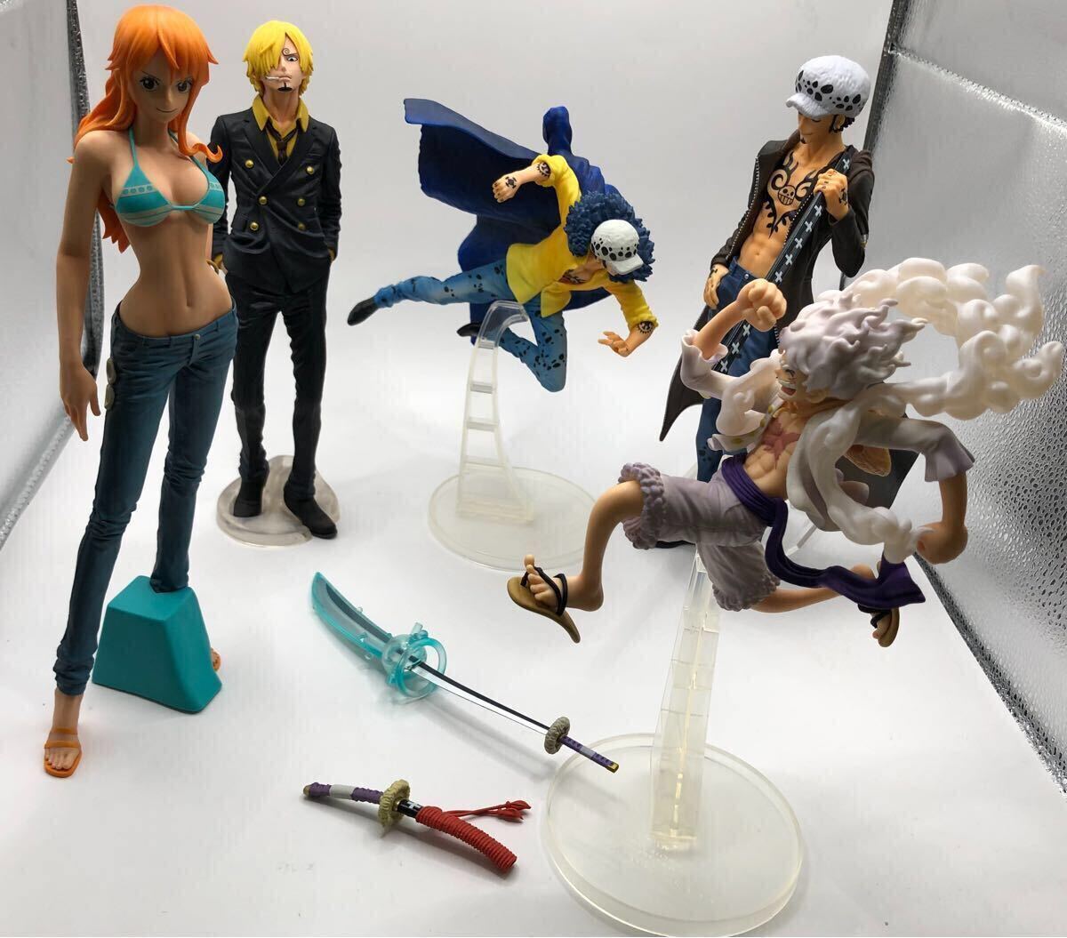 A496 ワンピース フィギュア 5体セット ナミ サンジ トラファルガー・ロー ルフィ ギア5 武器付 ONE PIECE