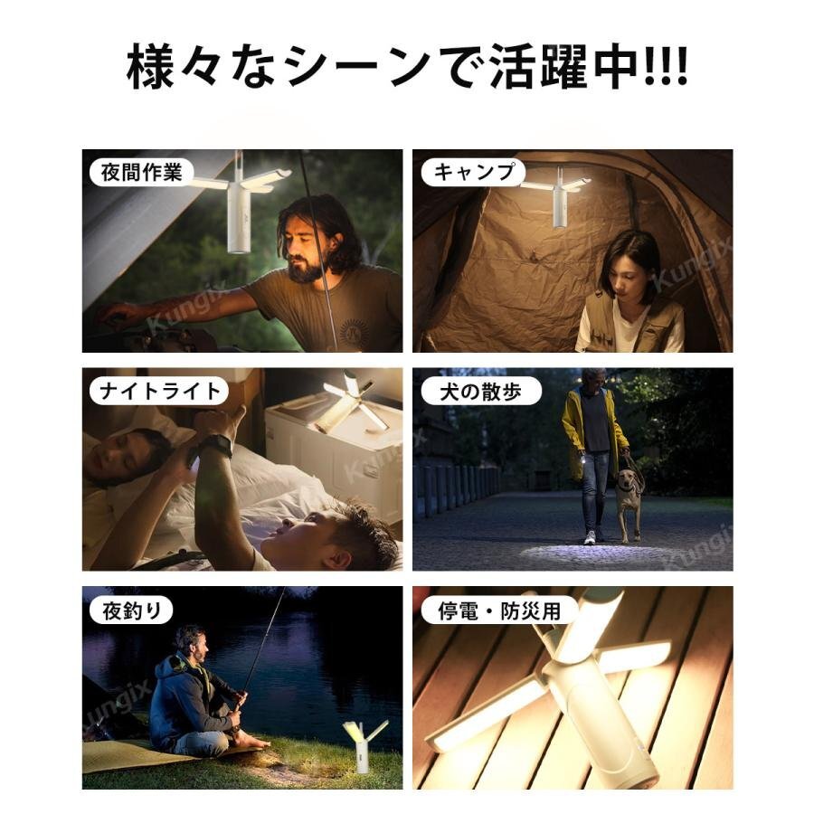 キャンプランプの電源が切れた後は、充電しながら照明に使用できる外部モバイルバッテリーの使用をサポートし、バッテリー寿命が2倍になり、屋外キャンプがより安全になります。