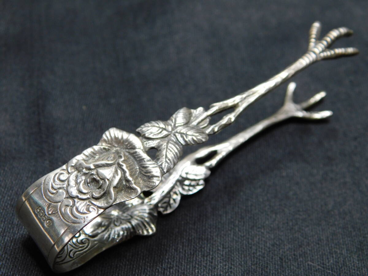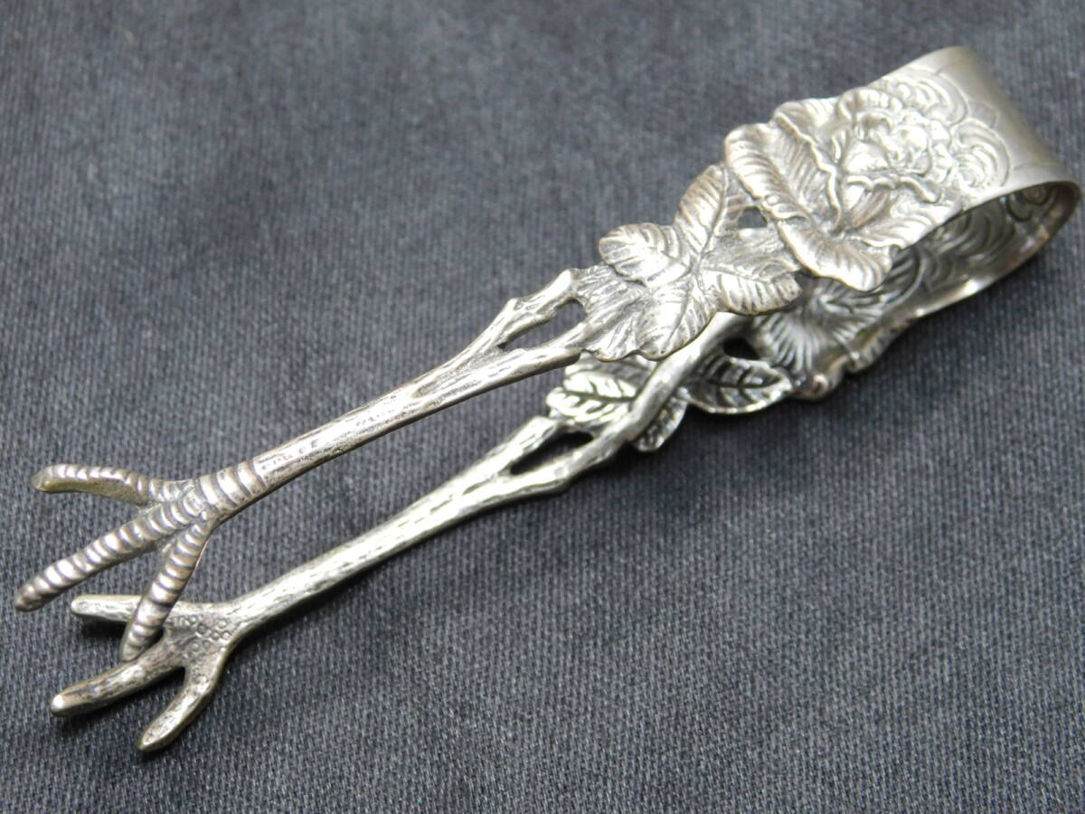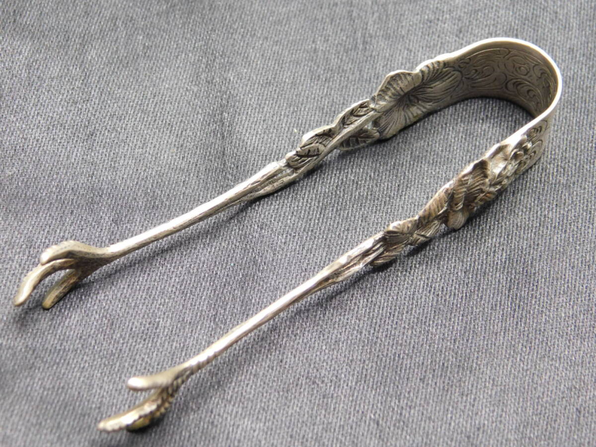 【ヨーロッパアンティーク】シルバ-835 シュガートング バードクロウ 15.6g 銀製品 彫金 純銀/M386