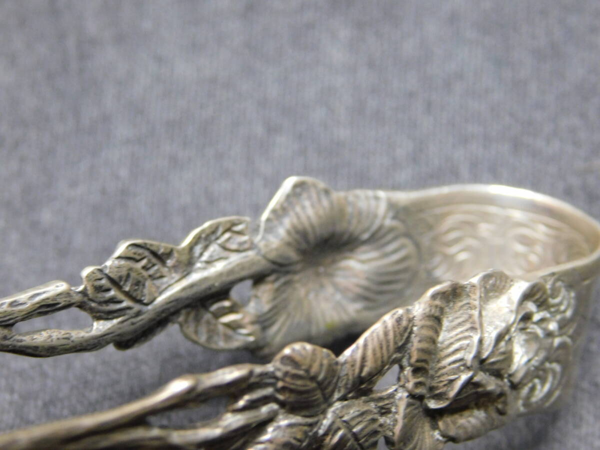 【ヨーロッパアンティーク】シルバ-835 シュガートング バードクロウ 15.6g 銀製品 彫金/M386