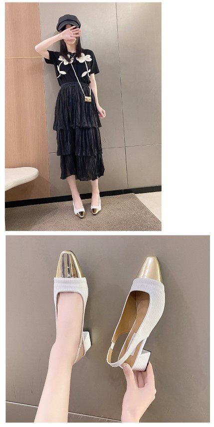 ・メタリックなつま先がお洒落でモダンな切り替えデザインのサンダル。