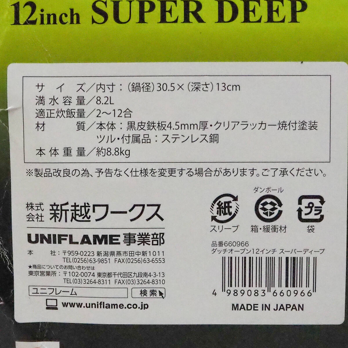 UNIFLAME ユニフレーム ダッチオーブン12インチ スーパーディープ 調理器具 黒皮鉄板製 IH・直火対応 アウトドア キャンプ S1573