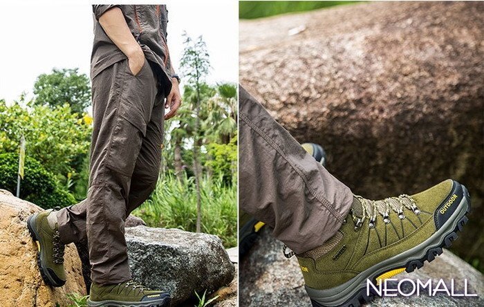 メンズ トレッキングシューズ グリーン 26.5cm【858】ハイカット ハイキングシューズ 防滑 耐磨耗 衝撃吸収 レディース 男女兼用