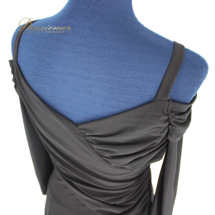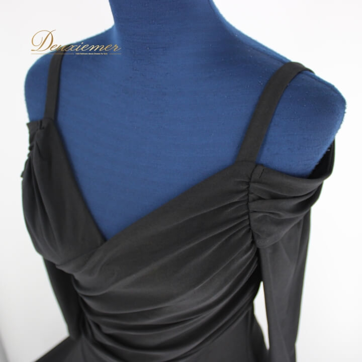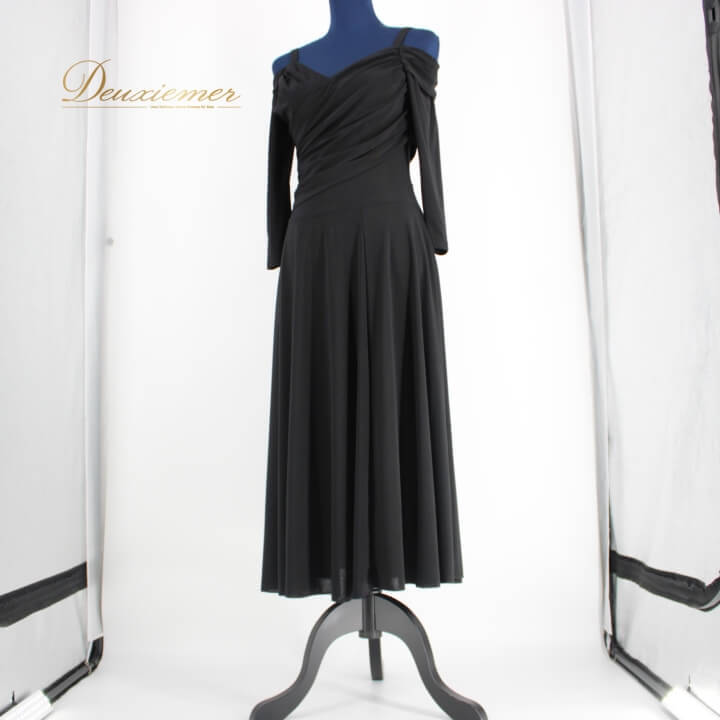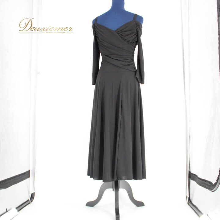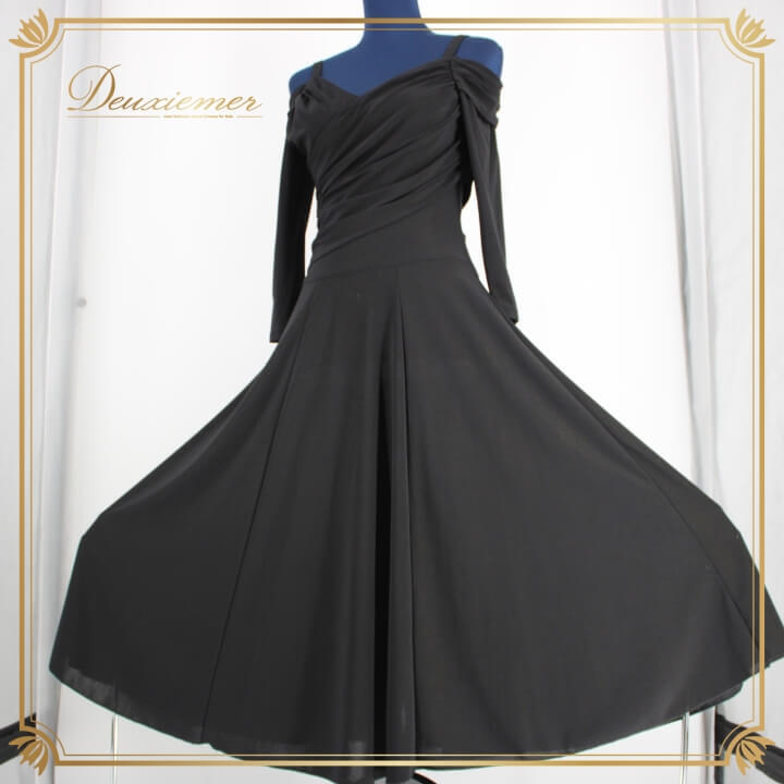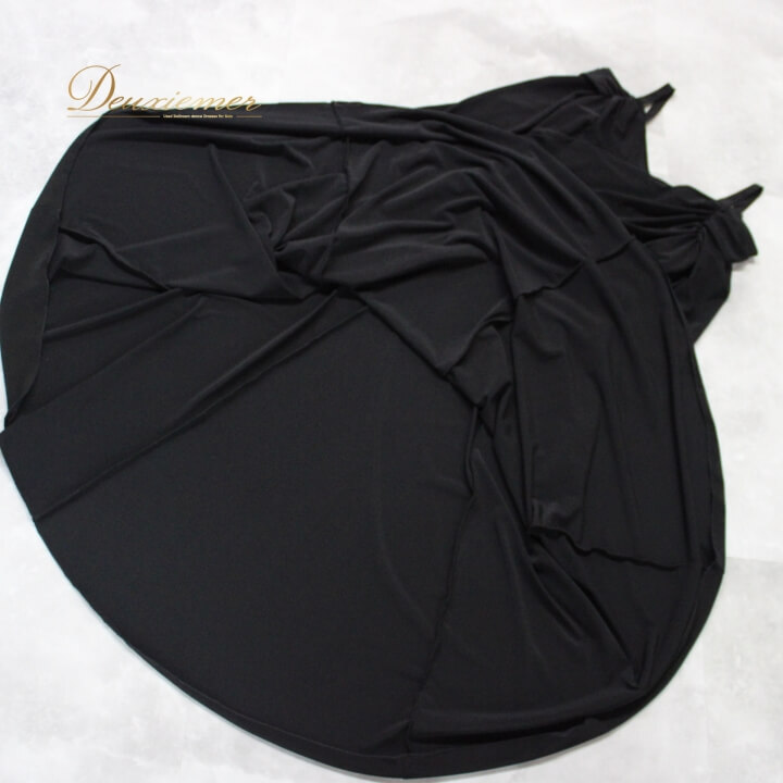| 【商品名】社交ダンス衣装 ドレス 【サイズ】 平置き実測:総丈約117cm(裾~肩部まで)、身幅約38cm、ウエスト約32cm~ ※実測の為、多少の誤差はご了承ください 【仕様】 ・伸縮性有り ・肩パッド無し ・胸パッド無し ------------------------------------ 【ポイント】 ▽洗練されたアーバンブラック ▽大きく広がる裾はダンス映え◎ ------------------------------------ 【撮影時使用トルソー】 種 類:女性用トルソー9号 (一般的に使用されるサイズです) サイズ:肩先~床約135cm(身長約160cm)、肩幅約37cm、バスト約88cm、ウエスト約66cm、ヒップ約89cm |