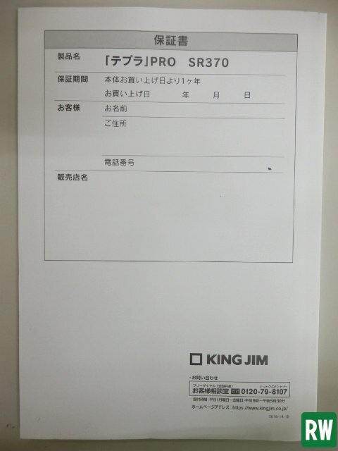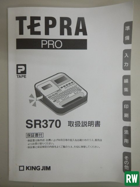 | 取扱説明書 TEPRA PRO テプラ プロ KING JIM キングジム SR370 W148×D5×H210mm 取説 |