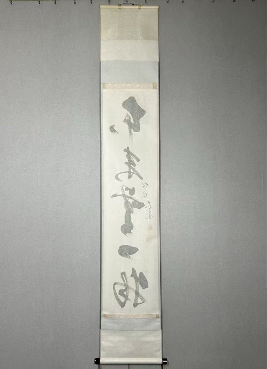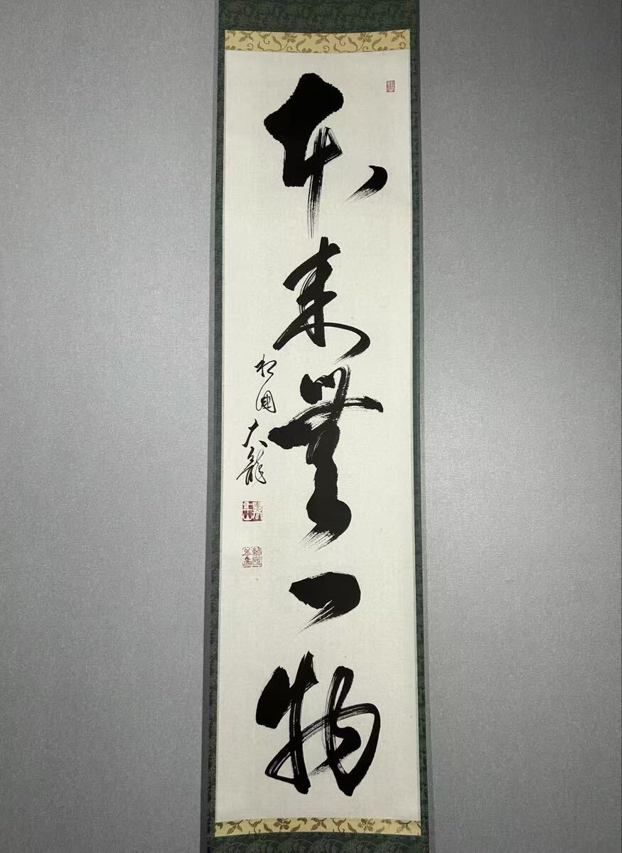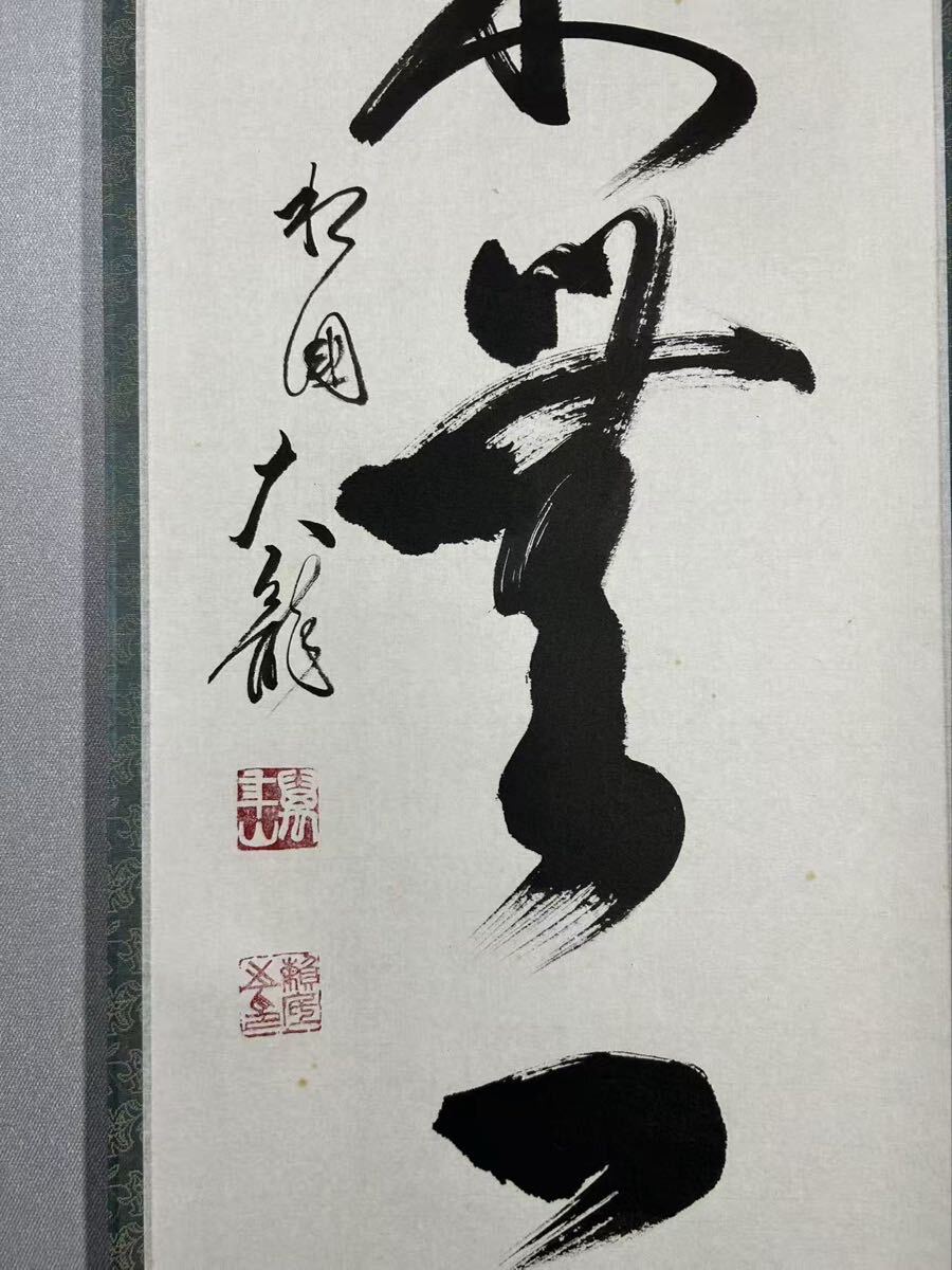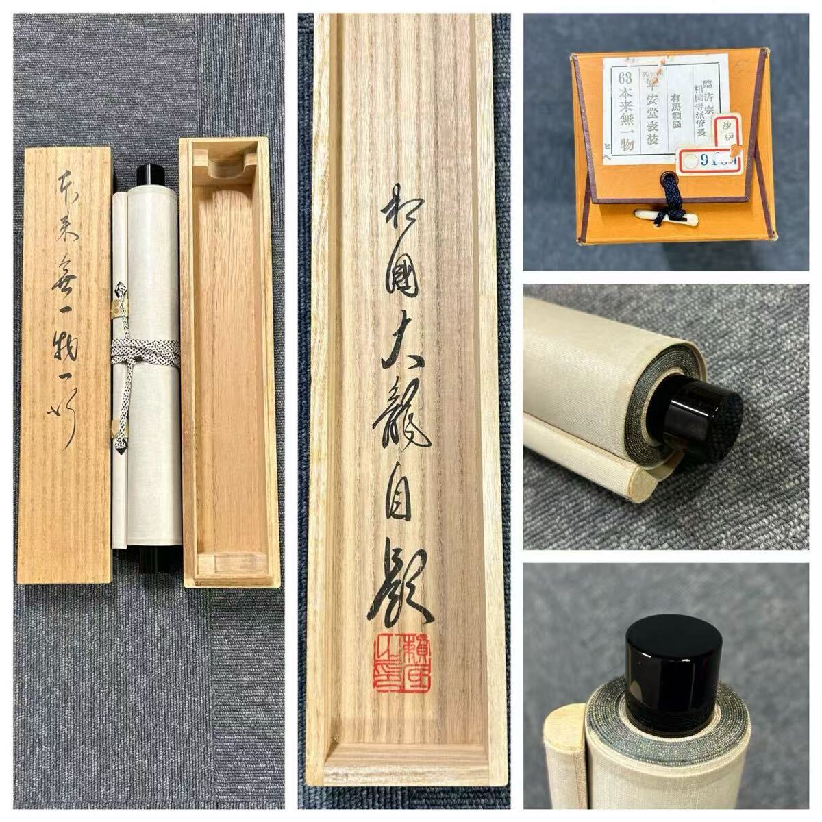 【模写】F-156掛軸 紙本 共箱 茶掛 茶道具 華道 花道具 有馬賴底 臨済宗相国寺派管長『本来無ー物』