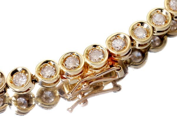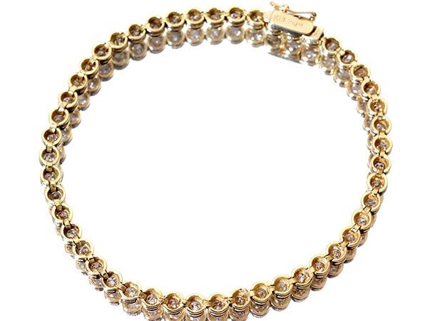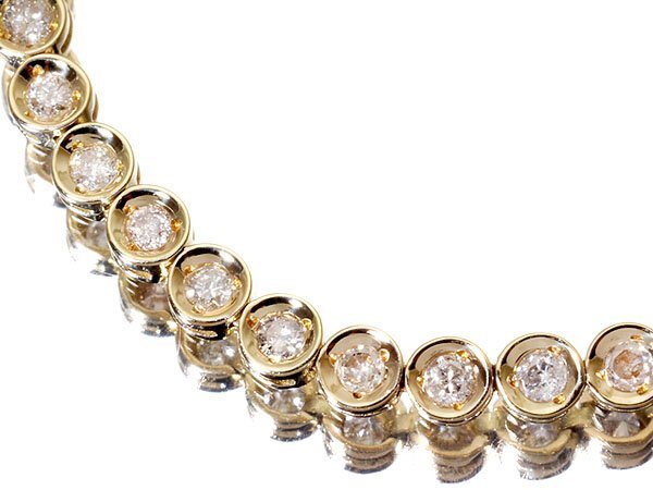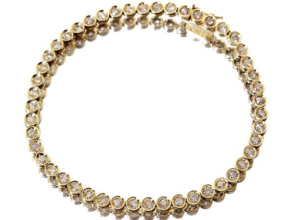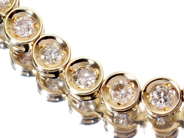 上品な輝き放つ天然ダイヤモンド総計2.00ctを素敵に宝飾した、高級K18イエローゴールドフルエタニティテニスブレスレットを1円から特別大放出致します!
