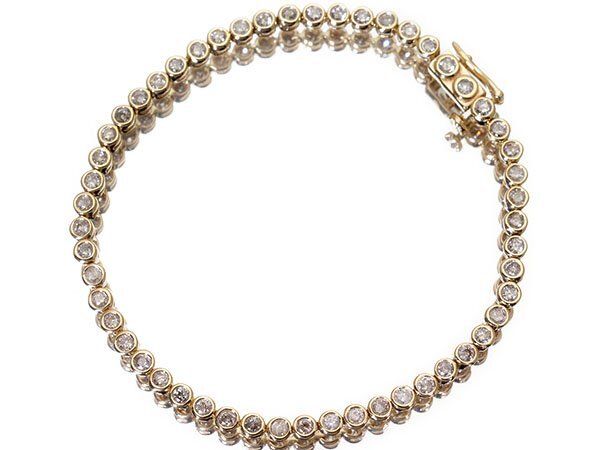 綺麗な輝き放つ天然ダイヤモンド総計2.00ctを素敵に宝飾した、高級K18YGフルエタニティテニスブレスレットを1円から特別大放出致します!