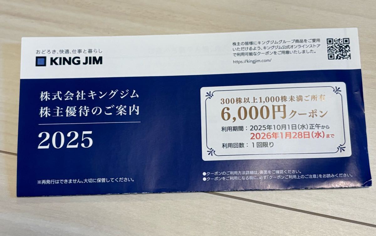 キングジム 株主優待 6000円クーポン  2026/01/28まで 取引ナビでコード連絡 送料無料