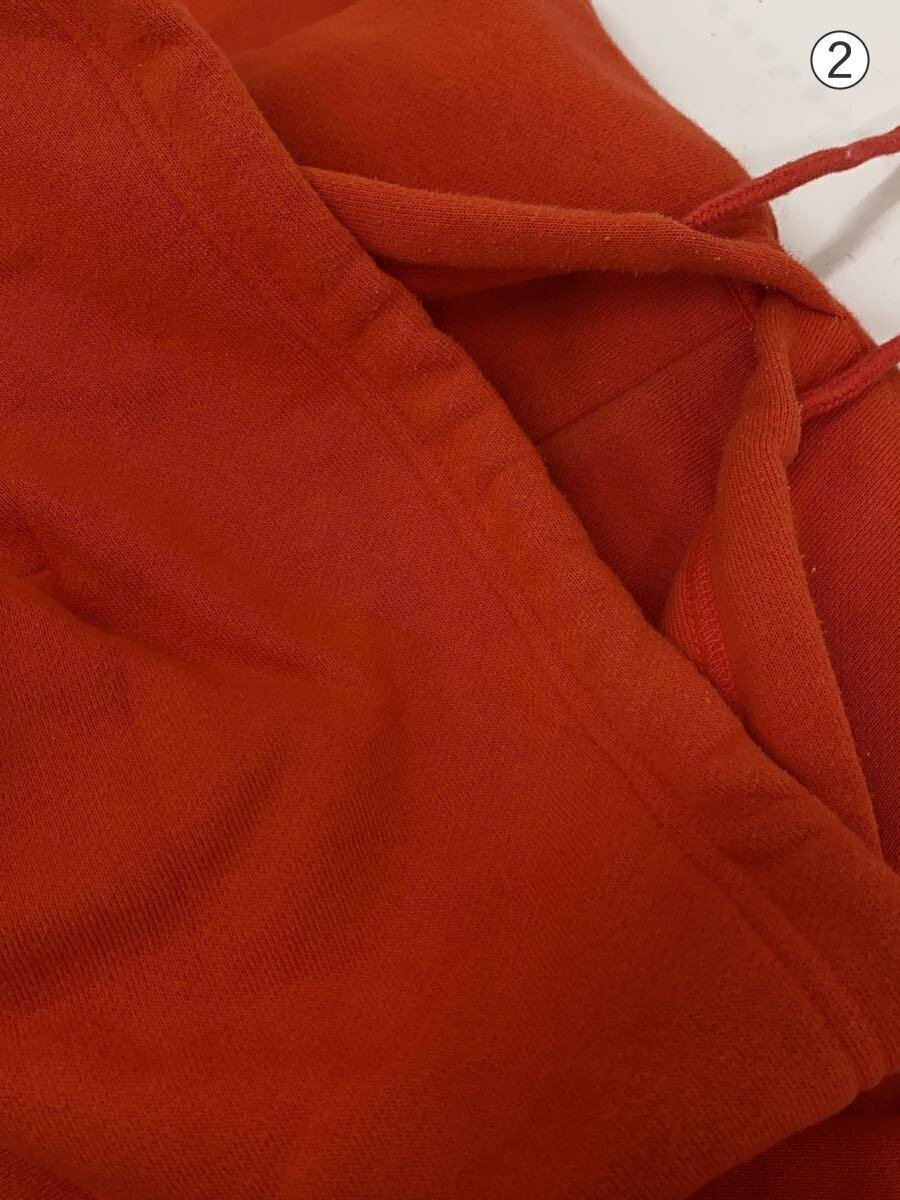 (1)色褪せ/毛羽立ちあり (2)フード毛羽立ち/色褪せあり (3)色褪せあり 写真箇所以外にも全体的に毛羽立ち/色褪せがございます。 |