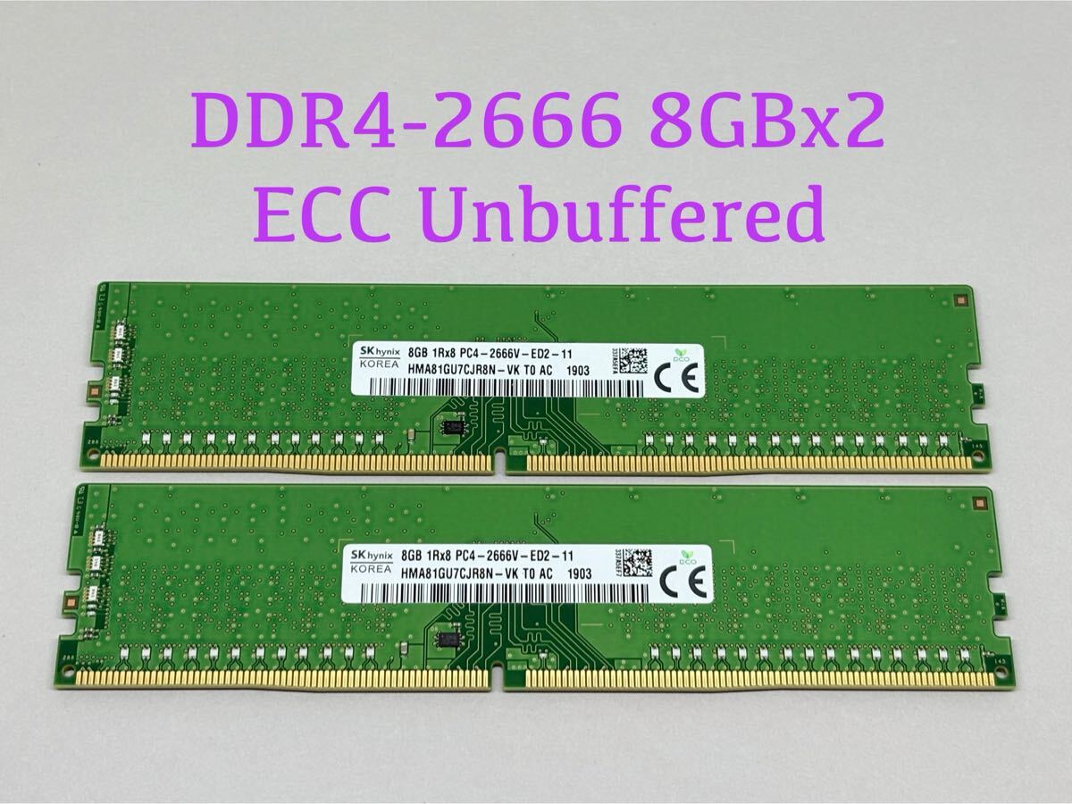 ★動作確認済み★SKHYNIX DDR4 2666 ECC Unbuffered 8GBx2枚(合計16GB)HMA81GU7CJR8N-VK★HP Z2 G4,Dell 3430/3431,Lenovo P330対応
