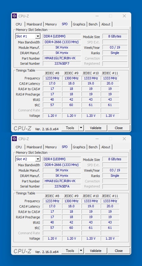 8GB 2枚(同じロット:1903)の16GBです。