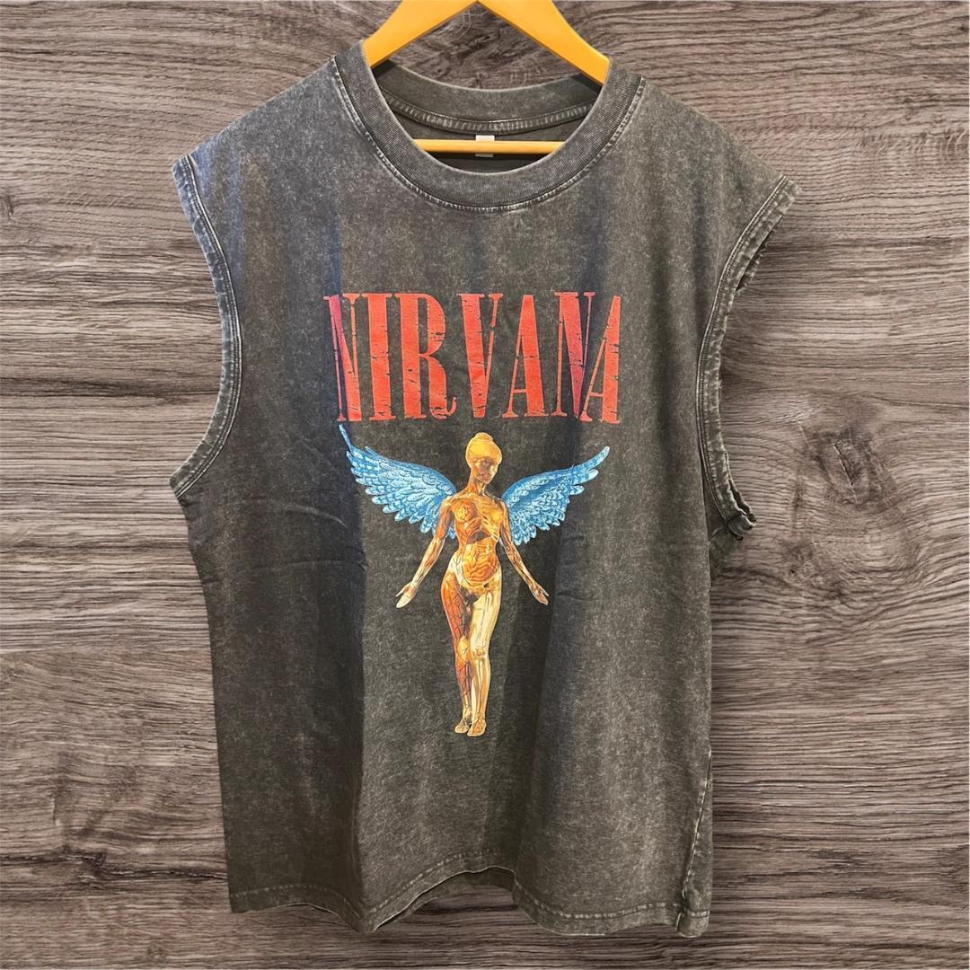 Sサイズ ノースリーブ Tシャツ ヴィンテージ加工 ニルヴァーナ オーバーサイズ