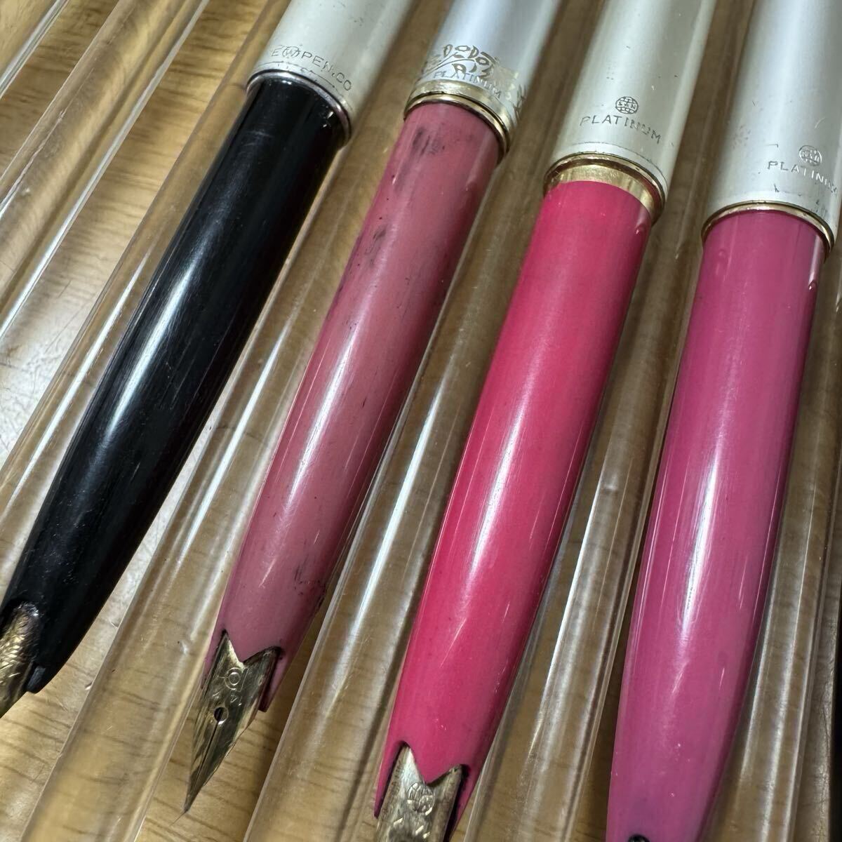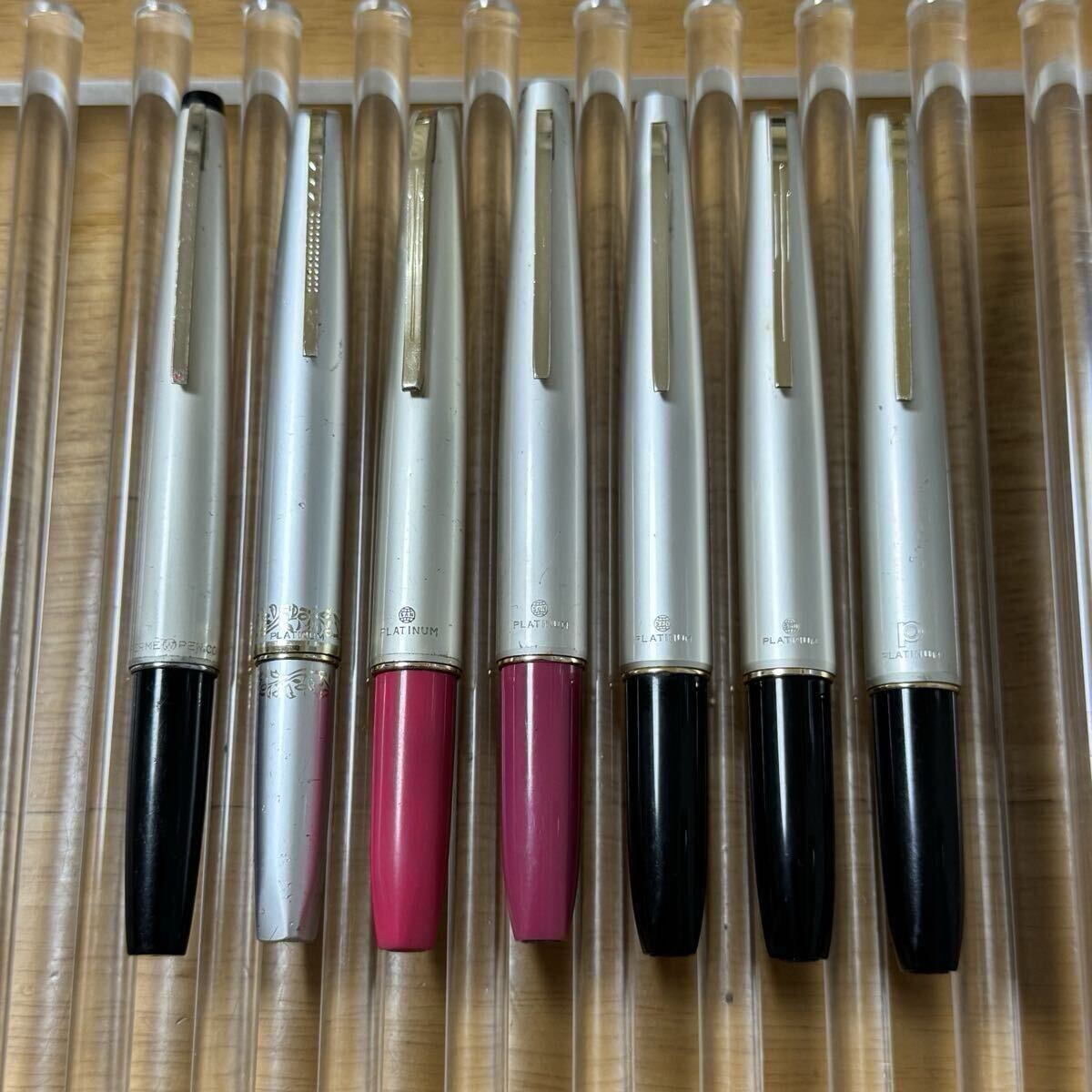こちらはプラチナ万年筆6本+1本セットです。画像一枚目1番左の黒の1本のみ違うメーカーです。7本とも中古品で使用感あります。動作確認しておらず洗浄もしていない為ジャンク扱いでよろしくお願いいたします。予めご了承くださいませ。