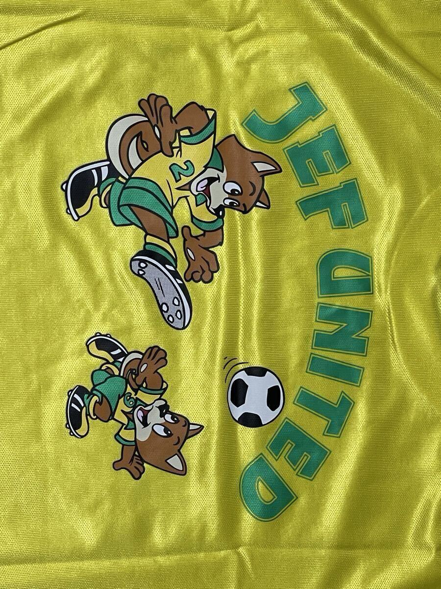 90年代、Mizuno製JEF UNITEDのSサイズTシャツ、キャラクタープリント付き。