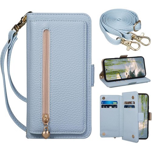Rssviss Google Pixel 8a ケース 手帳型 pixel8a ケース ピクセル8a 手帳型 ショルダー 財布一体型 カード収納 大容量 スタンド機能 汗、指紋や擦り傷防止 手首/肩掛けストラップ付き 長さ調整可能 小銭入れ 全面保護 サイドマグネット 可愛い 人気 レディース シュリンクレザー プレゼント Pixel 8a 6.1インチ 附ストラップ ブルー 520