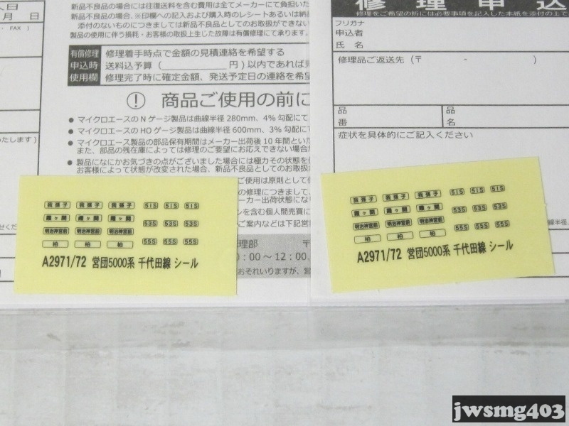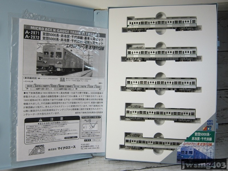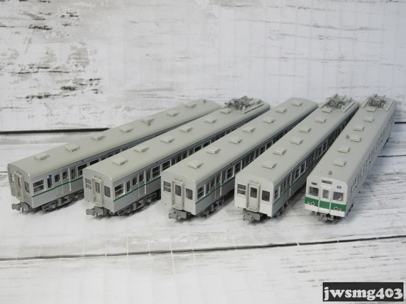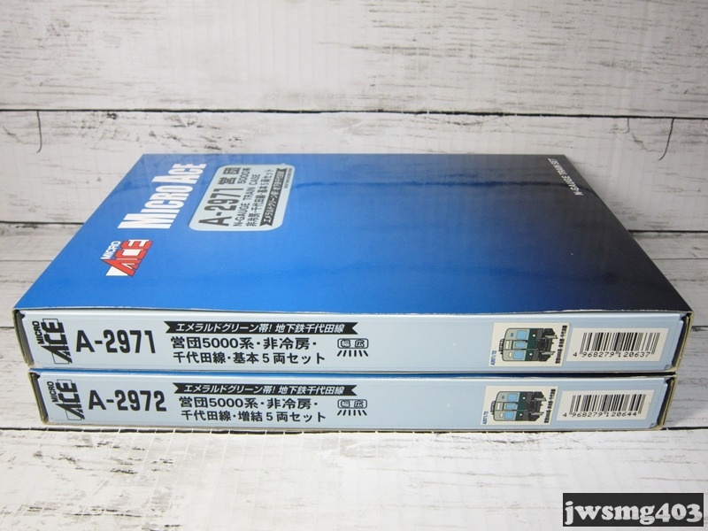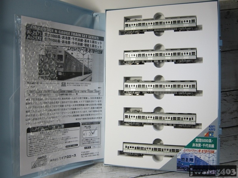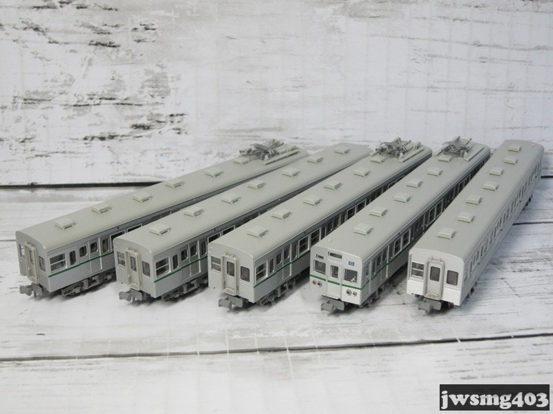 ●マイクロエース 営団5000系非冷房 千代田線 基本セット(5両)[A2971] ●マイクロエース 営団5000系非冷房 千代田線 増結セット(5両)[A2972] ・ヘッドライト・テールライトの点灯は確認済です(基本セットのみ)。 ・動力車の走行はテスト済みです。特に問題なく走行します。 ・付属品は未使用のまま残っています。 ・車体は特に目立つような傷もなく、比較的きれいな状態です。 商品管理番号:025820+002251004 |
