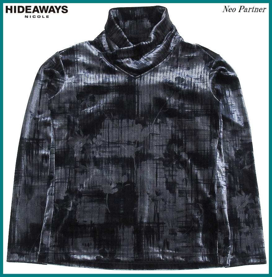 ハイダウェイニコル ベロア調 ムラ柄プリント オフネック ショールカラー プルオーバー 46 | ||||||||||||||||||