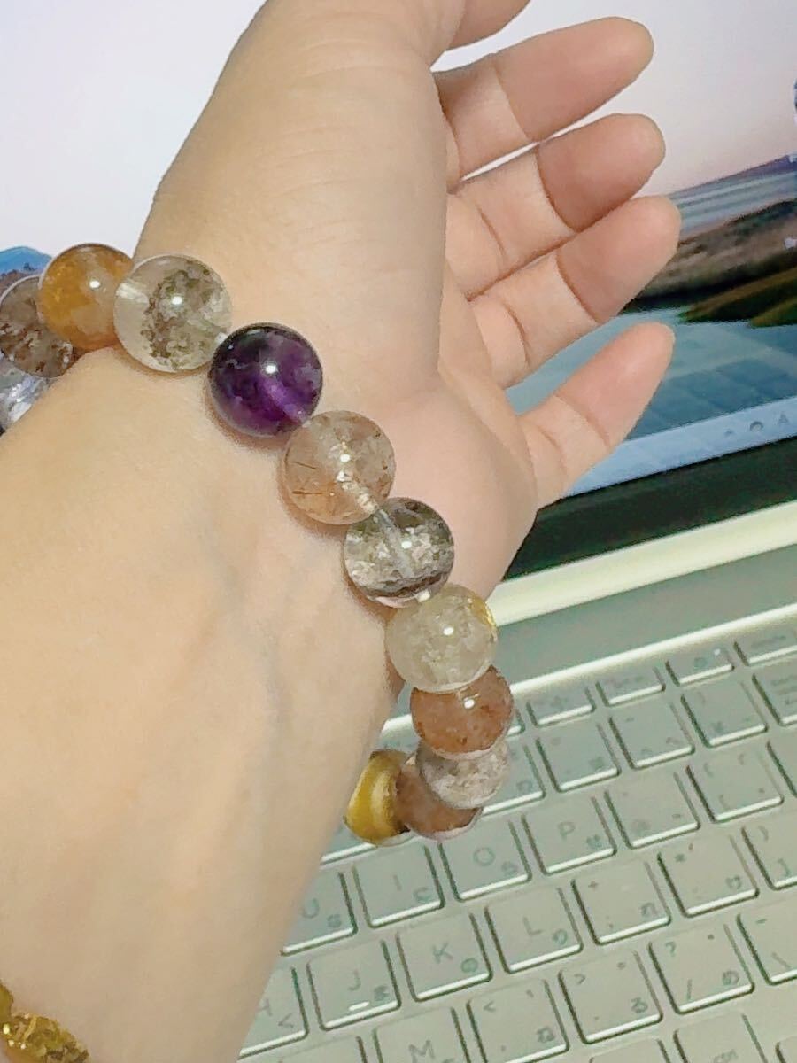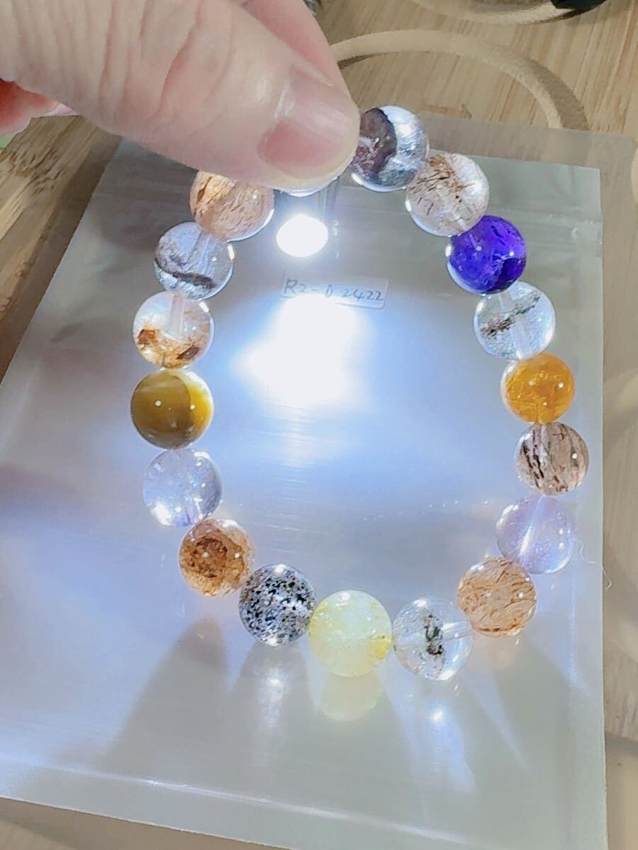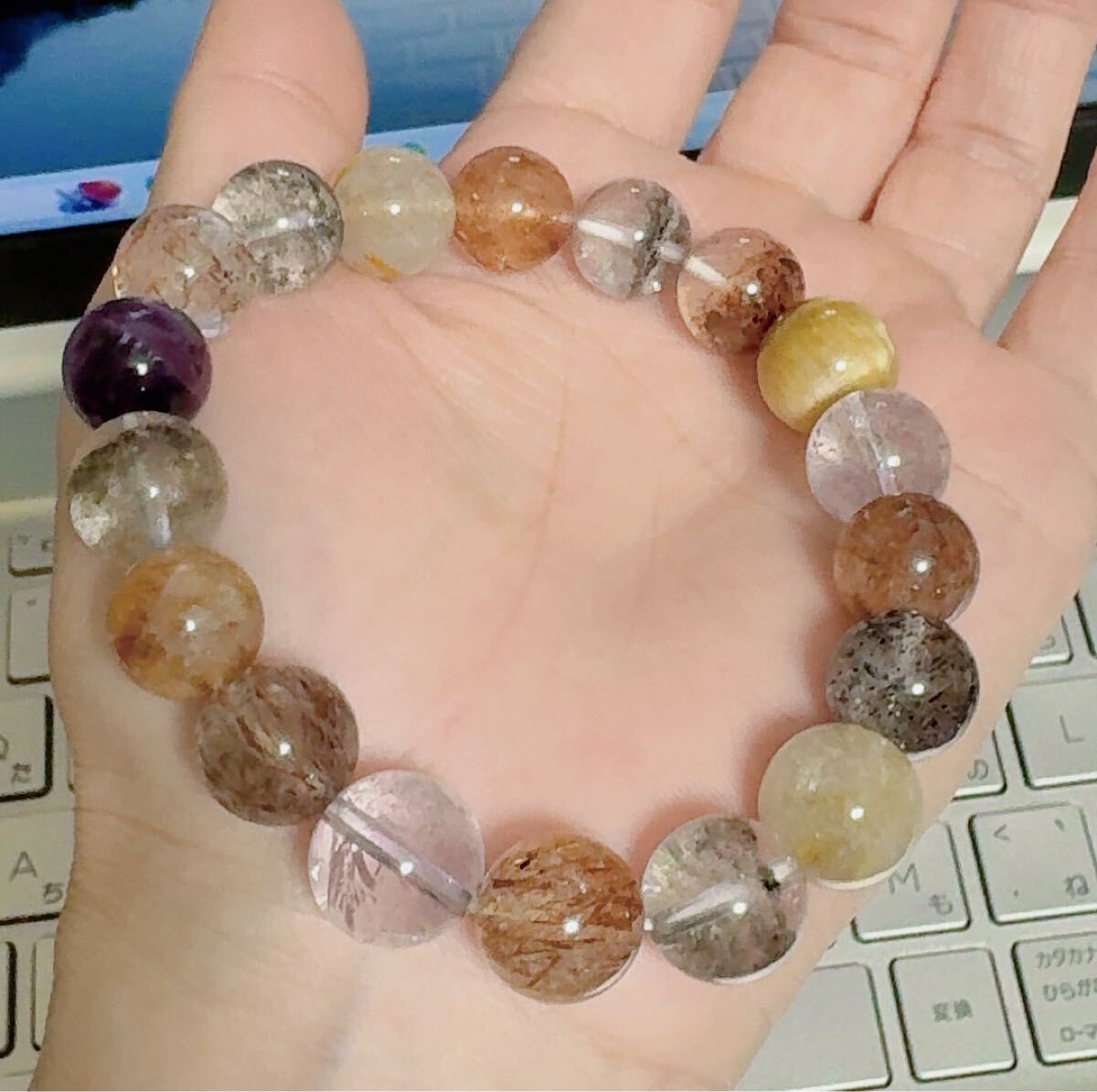 R2-02422天然水晶 一点物 スーパーミックス水晶 ブレスレット17cm 天然石 スーパーセブン 開運 幸運 パワーストーン