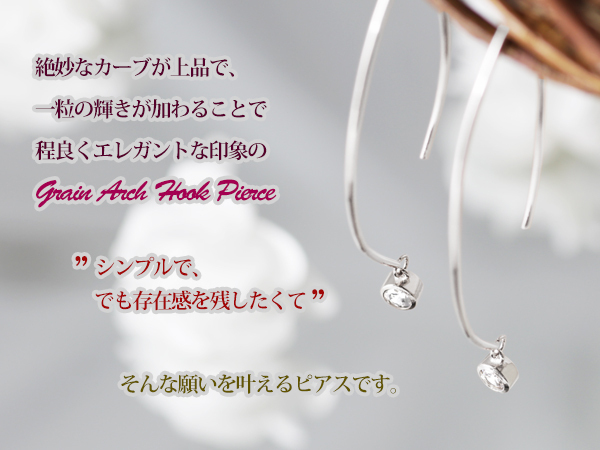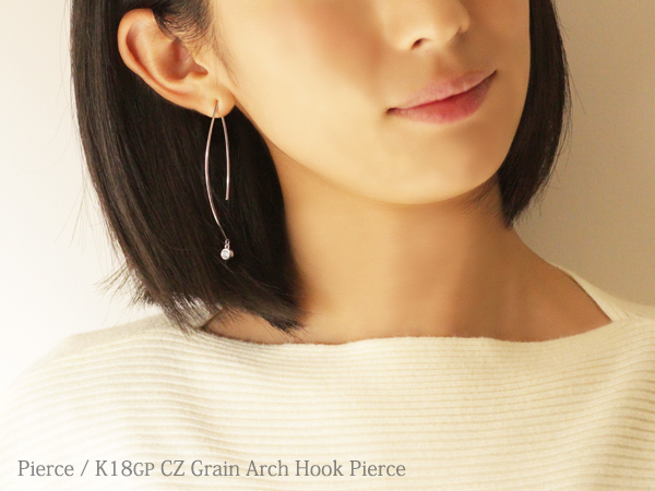 550円スタート/新品/ピアス/K18GP/ロング/フック/シルバー/18金/ホワイトゴールド/レディース/両耳/一粒/ダイヤ/CZ/シンプル/長い