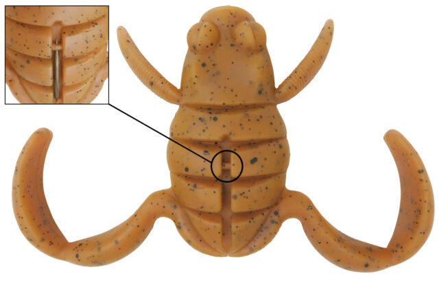 左右に開いたアームはしっかり水を掴んで移動距離を抑えつつ、細かな誘いでもピョコピョコと動いて生命感を増幅します。