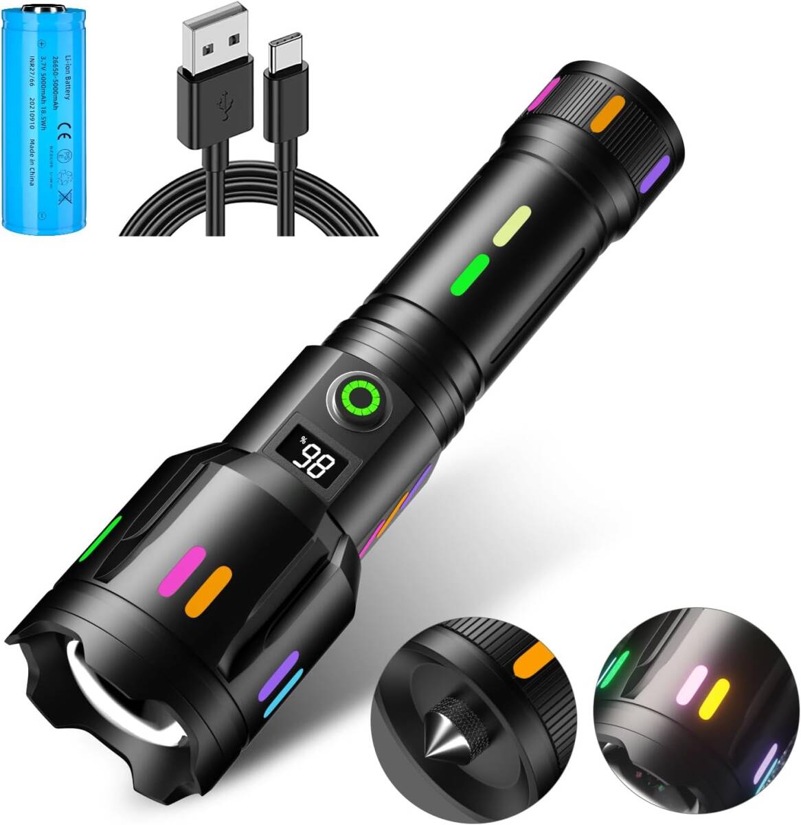 【最新液晶画面デジタル表示】独特な夜光懐中電灯 led 強力 軍用 最強 超高輝度 明るい ハンディライト USB充電式 超長遠射 超強力 ズーム 手持ちライト 明るい 6モード調光 軽量フラッシュ ハンド 作業用 携帯 多種電池が適用 防水 防災 登山 夜釣り キャンプ 地震 停電対策