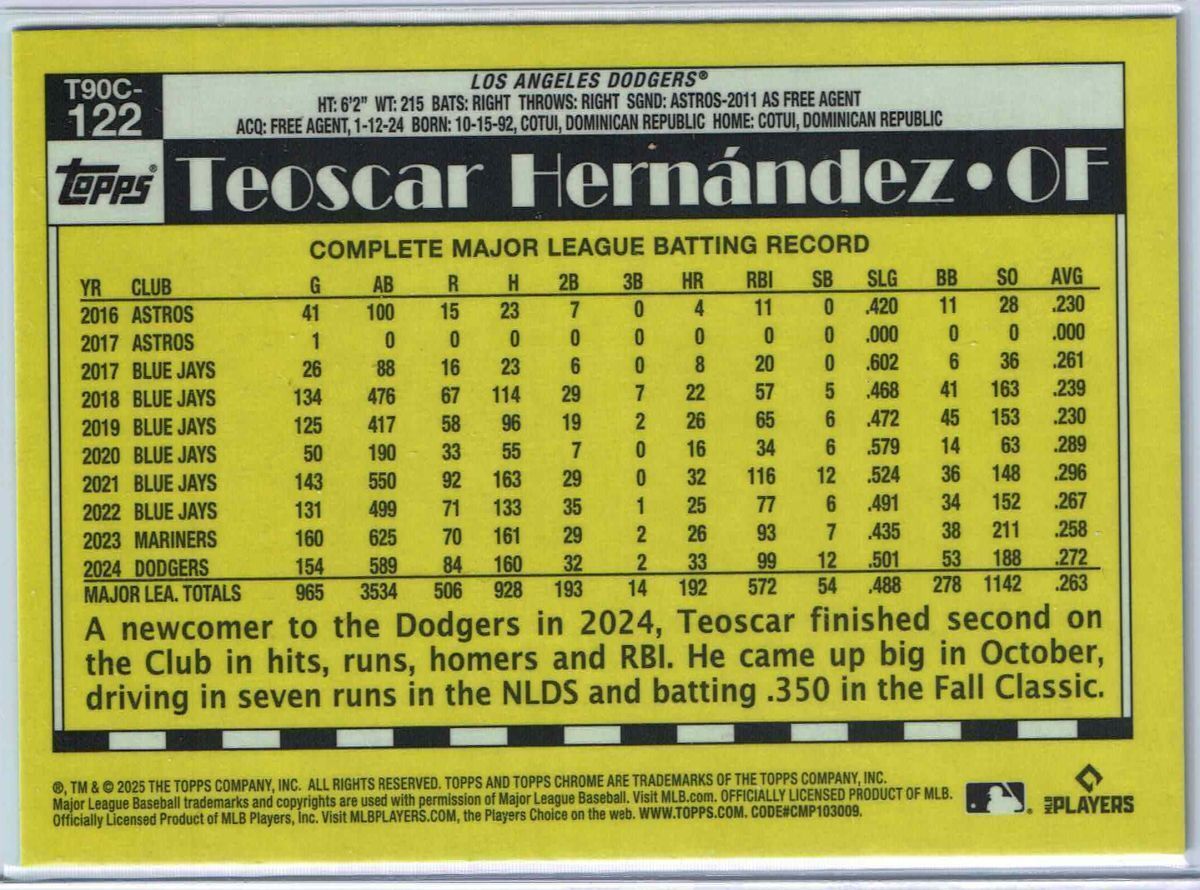 2025 Topps Series シリーズ 2 Silver Pack Mojo #T90C-122 テオスカーヘルナンデス Teoscar Hernandez - Dodgers