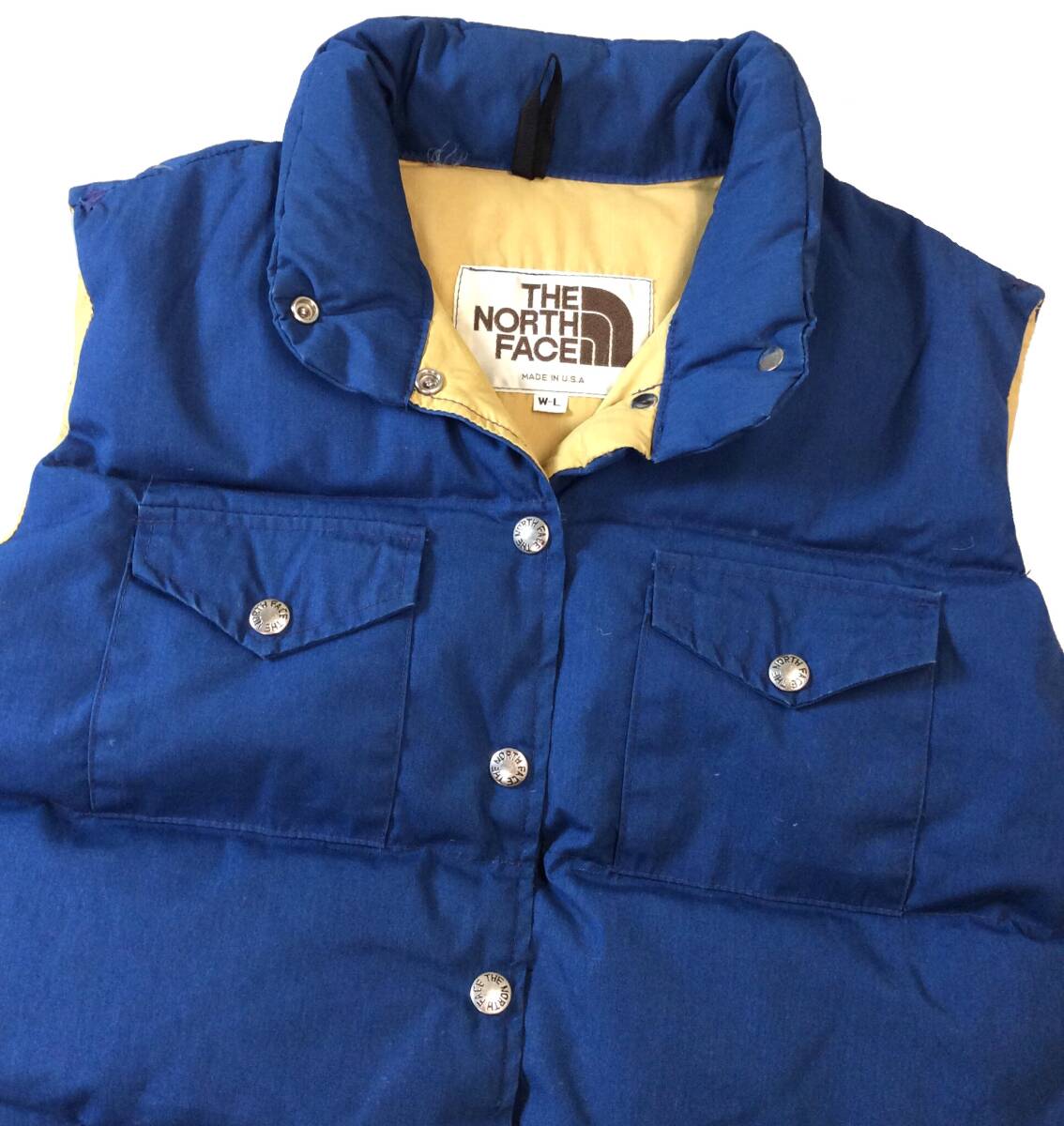 Vintage THE NORTH FACE ノースフェイス 茶タグ USA製 ダウンベスト ジャケット ヴィンテージ ブルー 青 レディース W-L メンズにも