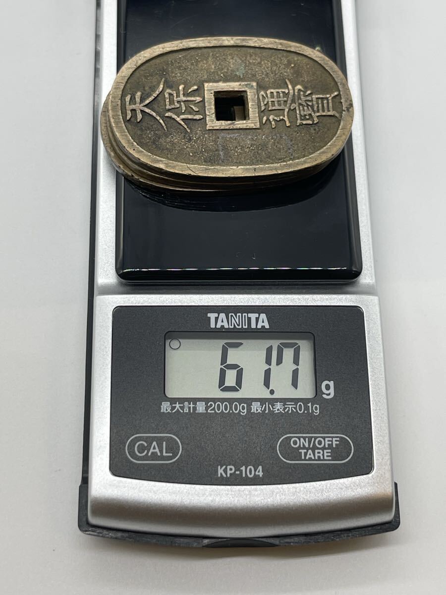 These are three Tenp Tsh coins from the Edo period in Japan.